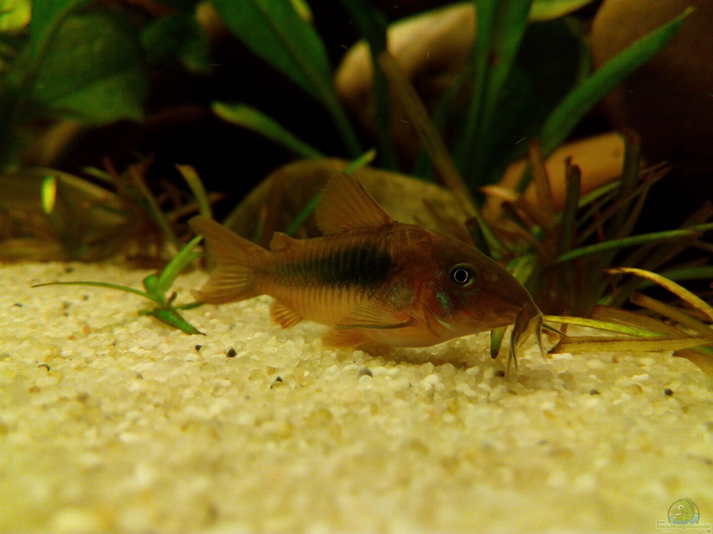eingesetzt am 02.01.2016 - 5.6.0 Pristella maxillaris (Sternflecksalmler, Wasserstieglitz) - 0.0.6 Corydoras aeneus (Metall-Panzerwels) - 0.0.6 Corydoras habrosus (Schachbrett-Zwergpanzerwels) - 0.0.11 Otocinclus vittatus (Längsstreifen-Ohrgitterharnischwels) - Artbestimmung unsicher! -1.2 Cleithracara maronii (Maronibuntbarsch)