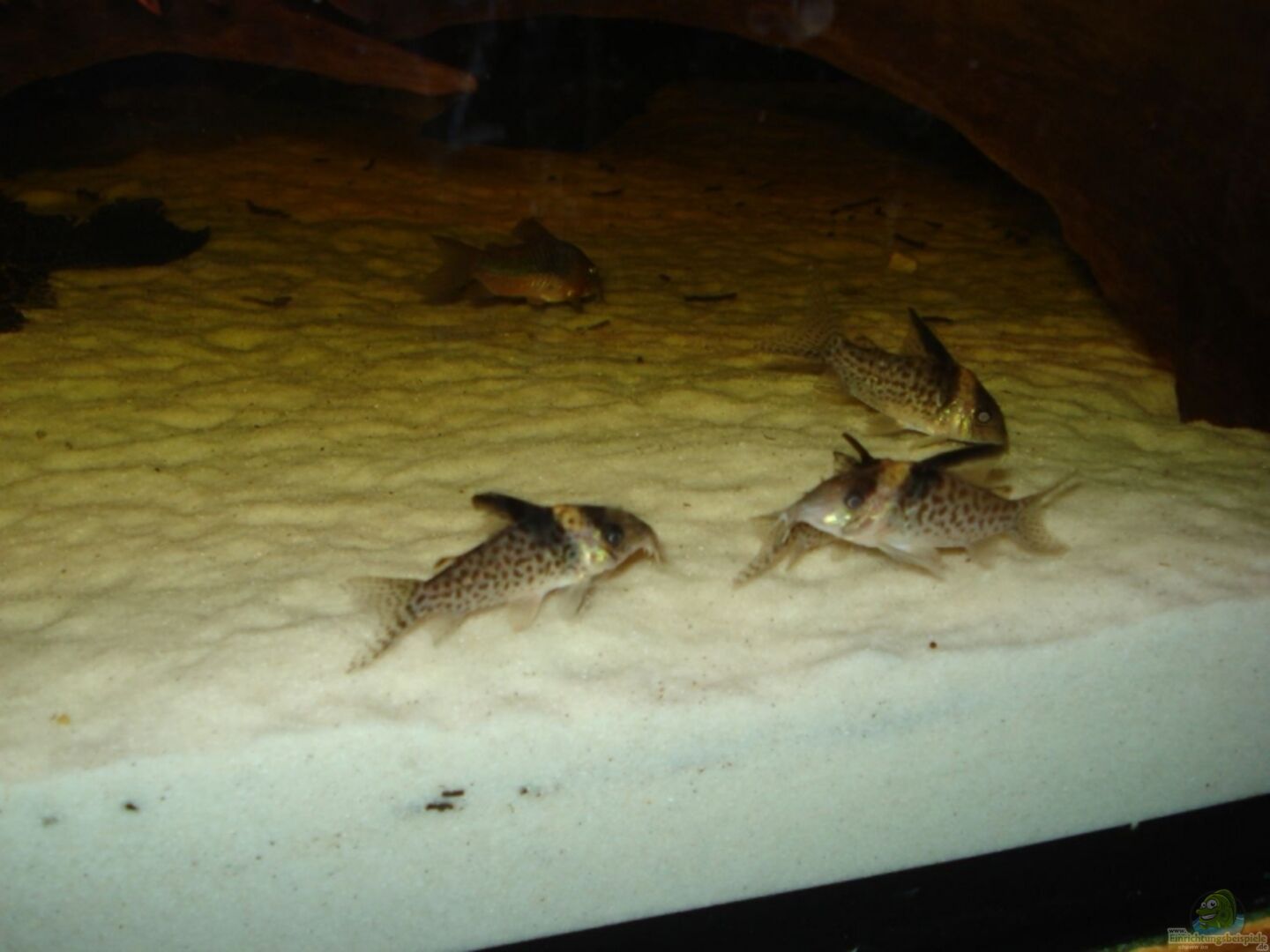 Barsche: Cichlasoma nigrofasciatum 1m/1w (Goldform) Cichlasoma nicaraguense 2m/3w Cichlasoma sajica 2m/2w Thorichthys meeki 1m/3w Welse: 6x Megalechis thorocata 3x Glyptoperichthys gibbiceps 14x Corydoras aenus 6x Corydoras wotroi L114 WF L77 Schmerlen (passen eigentlich nicht, sind aber nützlich): 3x Chromobotia macracanthus 1x Botia lohachata