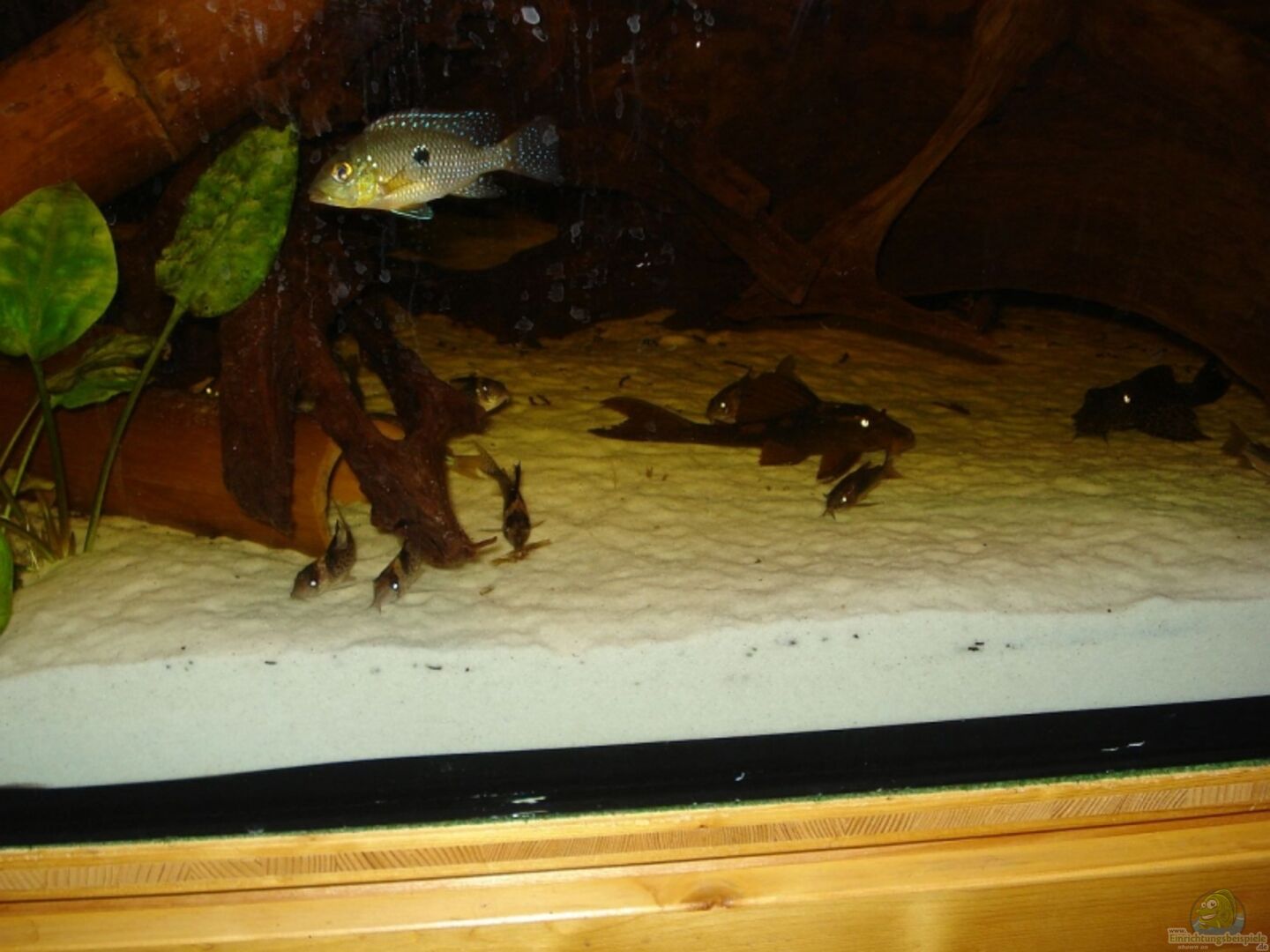 Barsche: Cichlasoma nigrofasciatum 1m/1w (Goldform) Cichlasoma nicaraguense 2m/3w Cichlasoma sajica 2m/2w Thorichthys meeki 1m/3w Welse: 6x Megalechis thorocata 3x Glyptoperichthys gibbiceps 14x Corydoras aenus 6x Corydoras wotroi L114 WF L77 Schmerlen (passen eigentlich nicht, sind aber nützlich): 3x Chromobotia macracanthus 1x Botia lohachata