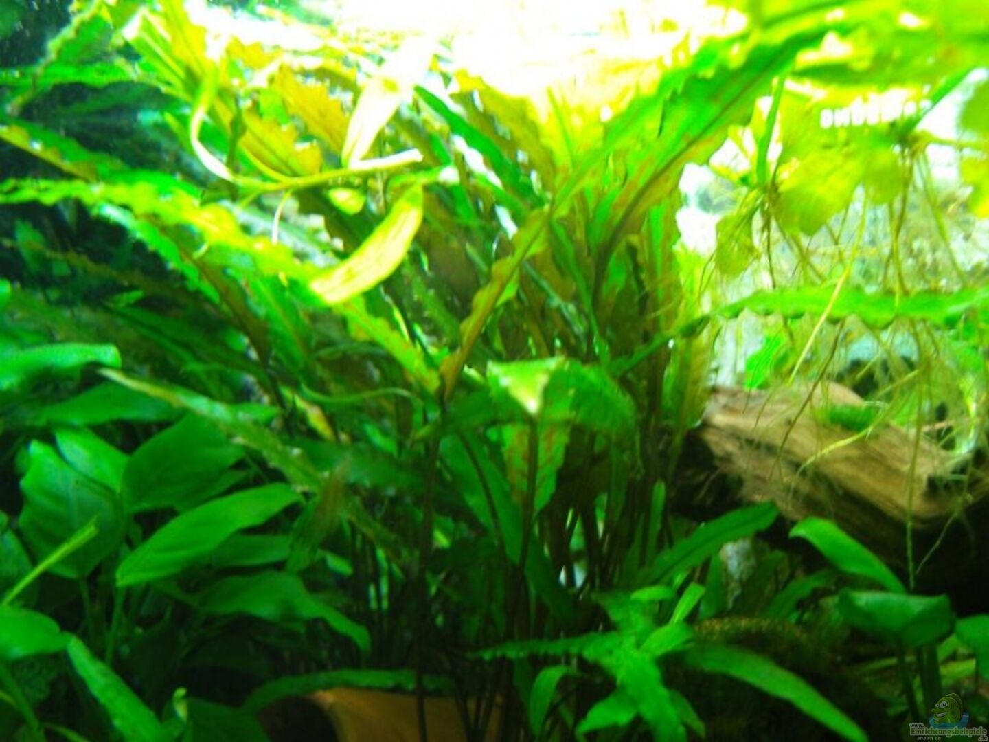 Vordergrund Cryptocorine nevillii Hintergrund Cryptocorine Walkeri braun rechts Vallisneria americana links Anubia barteri var.caladiifolia auf eine Wurzel gepflanzt rechts hinten auch eine Anubia auf Wurzel gepflanzt rechts zum verdecken des Innenfilters eine Microsorum pteropus Windelow auf einer kleinen Wurzel mittig am Innenfilter befestigt. Ceratopteris thalictroides als Schwimmpflanze Düngung: täglich Elos Fase1 Dosierung nach Angabe Easy Carbo Dosierung [...]