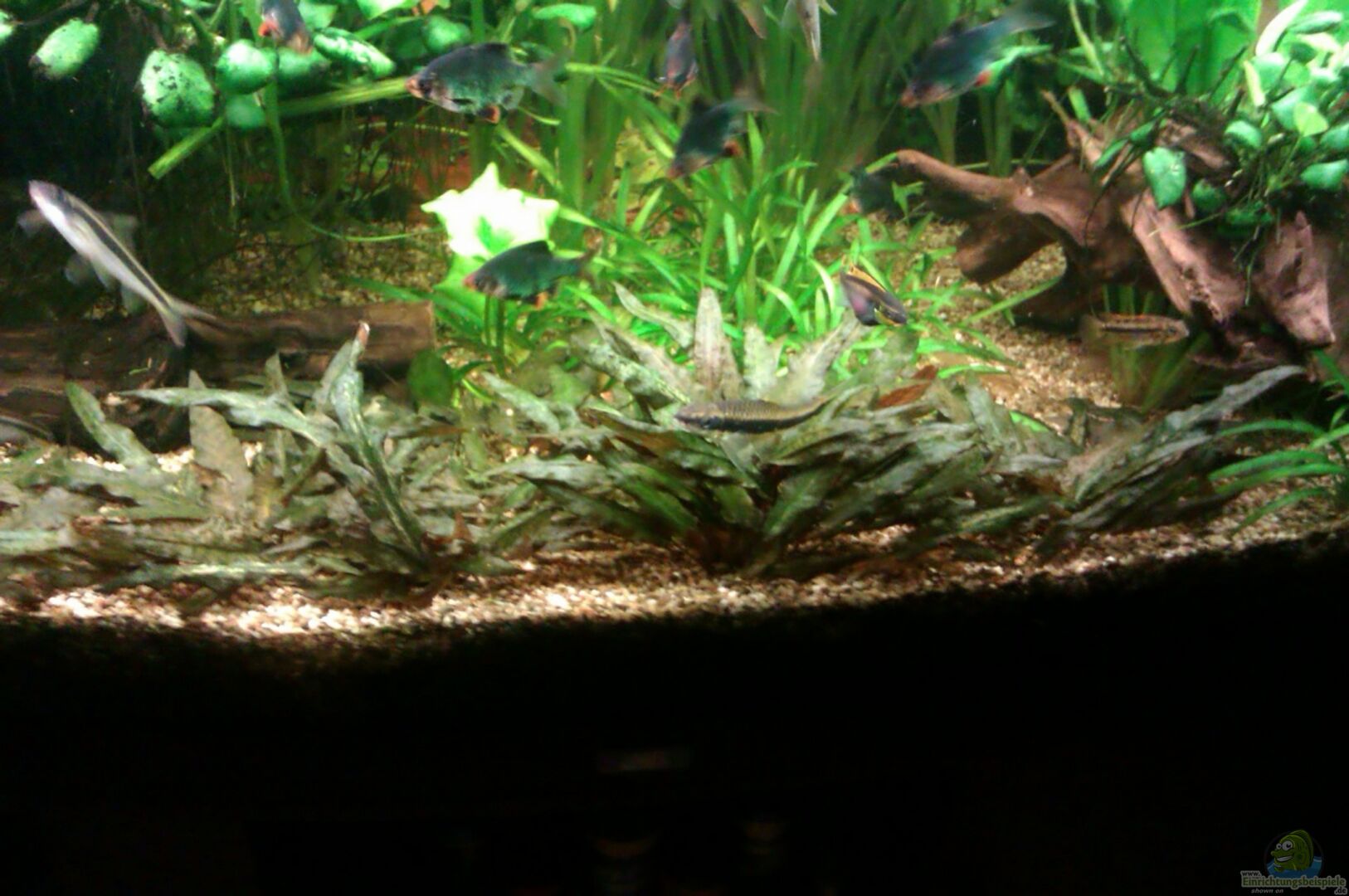 Vordergrund: Cryptocoryne ? // Wendtscher Wasserkelch Sagittaria subulata // Pfeilkraut Hintergrund: Vallisneria spiralis // Schrauben Vallisnerie Solitärplanze: Echinodorus amazonicus // Schwertpflanze Sonstige: Anubias barteri var. ? // Anubia Pistia stratiotes // Muschelblume Nymphoides spec. // Flipperlotus N88 (ganz neu drin, bin ja mal gespannt) ----- Düngung: 5ml pro Tag Tetra PlantaMin 5ml pro Tag Eisen II Dünger von Femanga -----