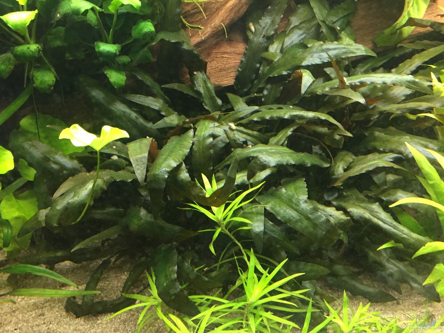 Bei der Bepflanzung habe ich mich für pflegeleichte und robuste Pflanzen entschieden, die mit meinen Lichtverhältnissen, dem Bodengrund und den geringen Düngegaben bestens klarkommen: - Nymphoides hydrophylla Taiwan (Wasserblättrige Seekanne) - Microsorum pteropus (Javafarn) - Heteranthera zosterifolia (Seegrasblättriges Trugkölbchen) - Sagittaria subulata (Flutendes Pfeilkraut) - Cryptocoryne lutea ???Hobbit??? (Hobbit Wasserkelch) - Cryptocoryne lucens (Glänzender Wasserkelch) - [...]