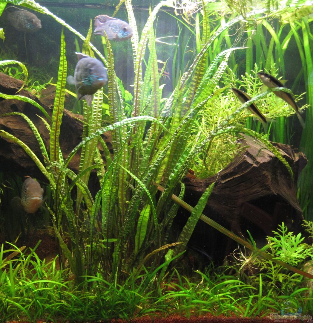 Vordergrund: Heteranthera zosterifolia Eine sehr schöne Vordergrundpflanze. Sie wird teilweise von den Siamesischen Rüsselbarben gefressen, wächst jedoch schneller nach. Somit haben die Rüsselbarben eine gute Nahrungsergänzung. Hintergrund: Cryptocoryne crispatula var. balansae von der Gärtnerei Lucanas und von der Gärtnerei Stoffels Da diese Art sehr variabel ist, ist eine Angabe der Gärtnerrei wichtig. Beispielweise wird "Cryptocoryne crispatula var. balansae" von [...]