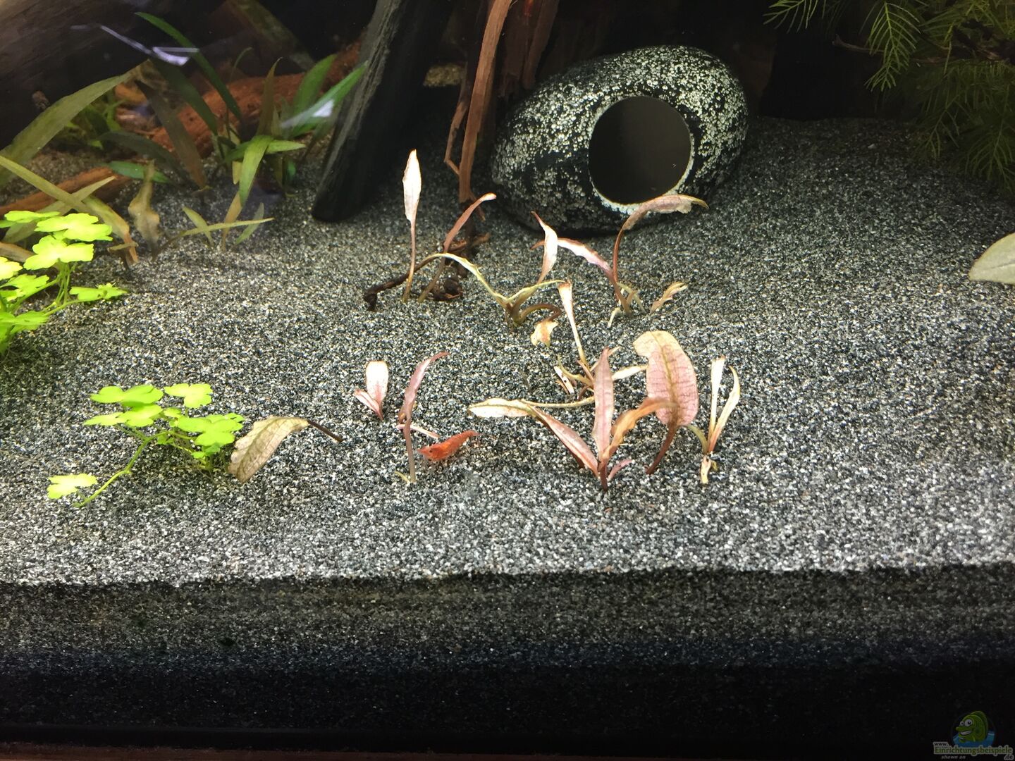 Bei den Pflanzen habe ich zu 95% auf in-vitro Pflanzen zurückgegriffen, da ich hiermit sehr gute Erfahrungen gemacht habe. Aus diesem Grund sind die Pflanzen auf den Bilder noch sehr klein und es wird noch einige Monate brauchen, bis ein dichter Bewuchs entsteht. Ziel ist es einen gro??en Cryptocorynendschungel zu erschaffen. Insgesamt sollten alle Pflanzen pflegeleicht und auch mit weniger Licht zufrieden sein. Ich habe mich für die folgenden Pflanzen entschieden: Eleocharis acicularis [...]