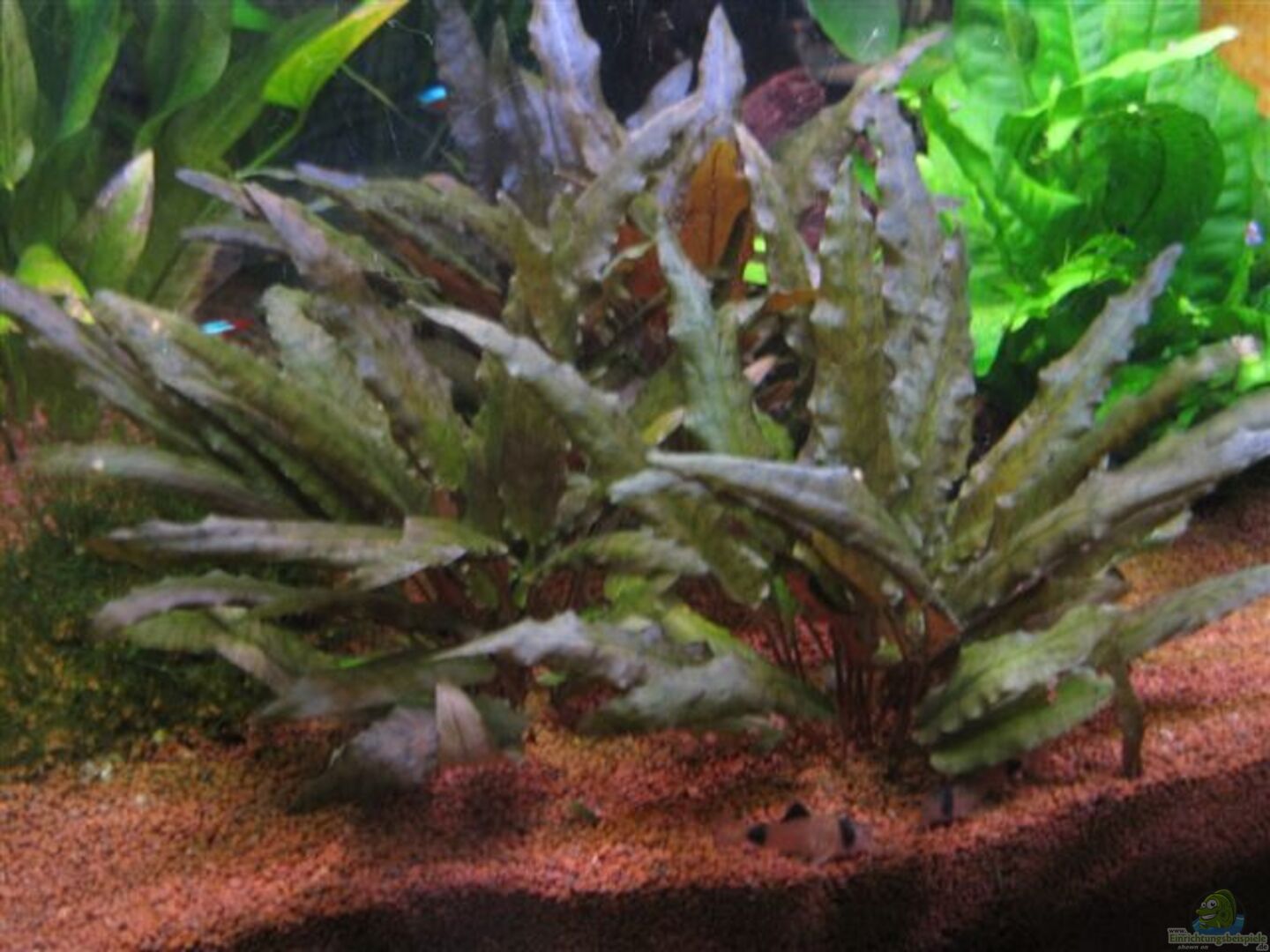 Hier findest du viele Infos zur Pflege und Beispiele für die Einrichtung deines Aquariums mit Grasblättriger Wasserkelch (Cryptocoryne cordata).