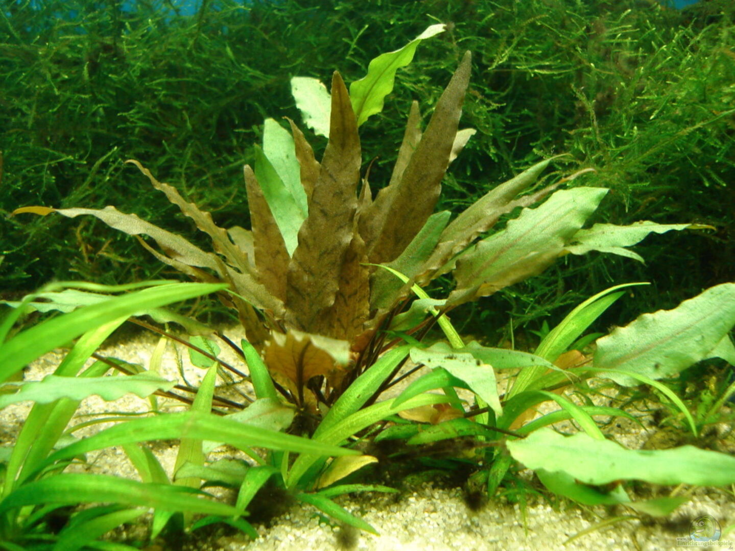 Hier findest du viele Infos und Beispiele für die Bepflanzung eines Aquariums mit Cryptocoryne affinis (Geflammt braunblättriger Wasserkelch).