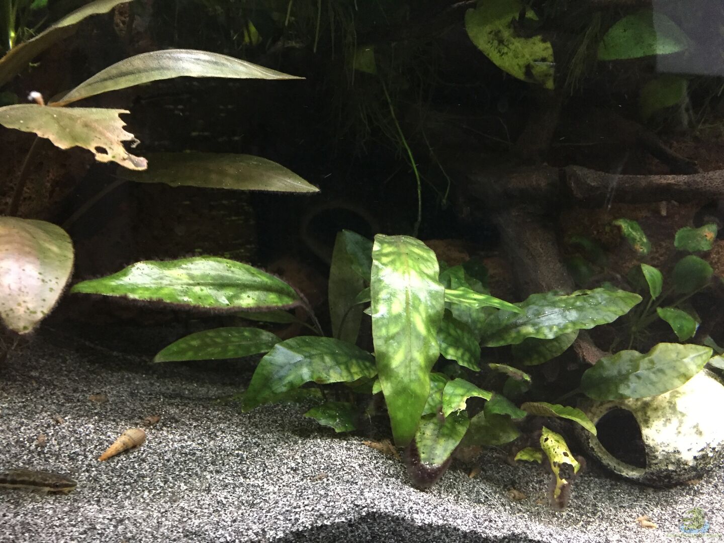 Bei der Bepflanzung habe ich den Fokus auf einfach zu pflegende Arten gelegt, die mit relativ wenig Licht auskommen: Rotala rotundifolia Rundblättrige Rotala Echinodorus Roter Oktober (Schwertpflanze ???Roter Oktober???) Hygrophila ???Siamensis 53B??? (Kirschblatt) Lagenandra meboldi ???Red??? (Meebolds Lagenandra) Nymphoides hydrophylla Taiwan (Wasserblättrige Seekanne) Cryptocoryne pontederifolia (Herzblatt-Wasserkelch) Cryptocoryne x purpurea (Purpur Wasserkelch) Cryptocoryne [...]