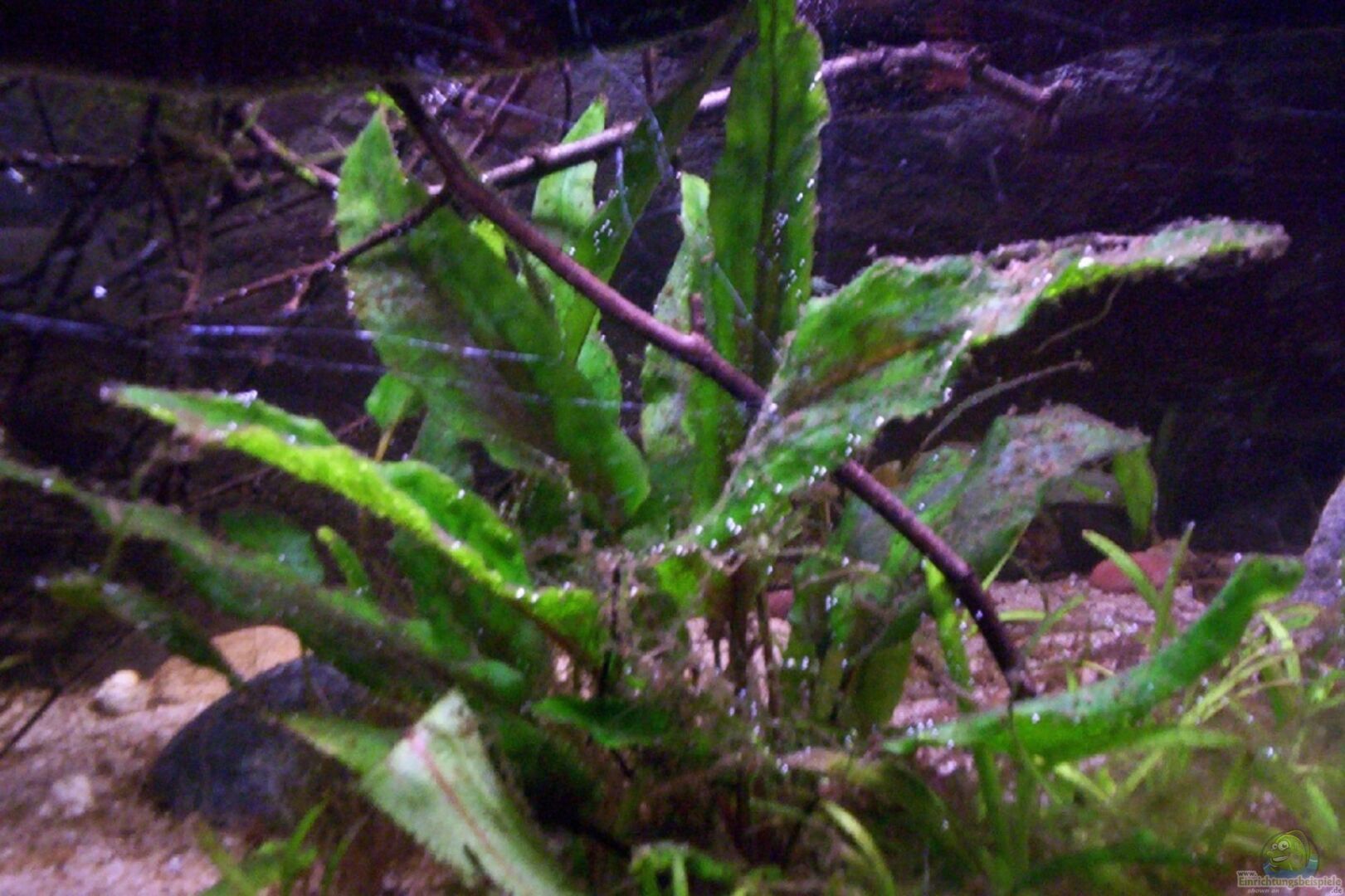 Hier findest du viele Infos und Beispiele für die Bepflanzung eines Aquariums mit Cryptocoryne affinis (Geflammt braunblättriger Wasserkelch).