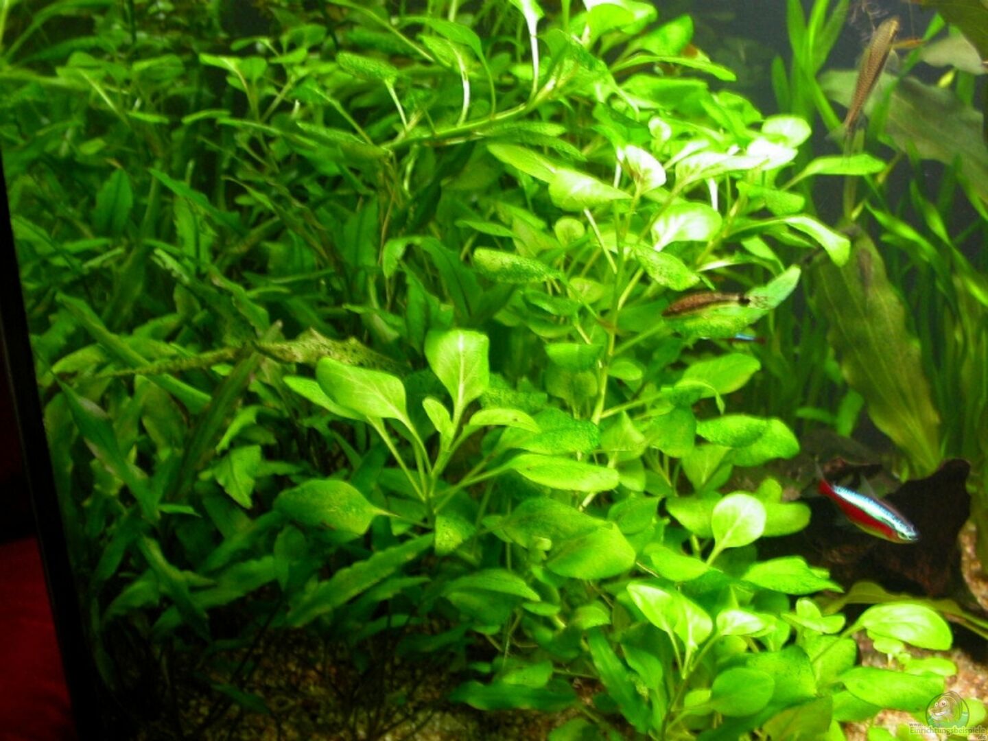 hinten links: Ludwigia (wahrscheinlich mullertii) - Bastard-Ludwigie hinten mitte: Vallisneria americana oder tortifolia - Schraubenvallisnerie hinten rechts: Cabomba caroliniana - Grüne Cabomba von links hinten nach vorne: Lobelia cardinalis - Kardinals-Lobelie ganz links vorn: Cryptocoryne becketii - Beckett´s Wasserkelch mitte: mehrere Echinodorus ???Red Rubin??? mitte rechts: Nymphaea lotus rot - Roter Tigerlotus vorne rechts: Cryptocoryne pontederifolia - Herzblatt-Cryptocoryne [...]