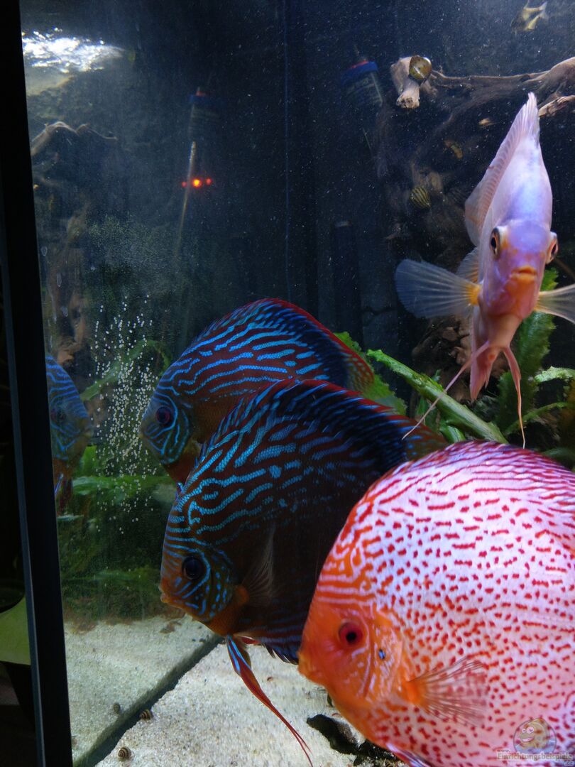 Fische: 10 Ohrengitterharnischwelse, 9 Neons 10 Corydoras Duplicareus 2 Mikrogeophagus Ramirezi Icy Blue (1M/1W) 13 Diskus Wirbellose: 5 Amanogarnelen
