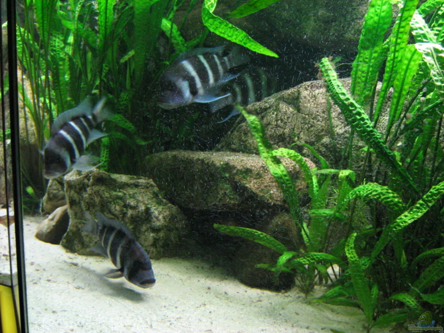 2/8 Cyphotilapia gibberose (frontosa) Blue mpimbwe WFNZ + reichlich Jungtiere, die immer wieder herausgefangen werden müssen. 1/1 Julidochromis marlieri ´Katoto´ + einige Jungtiere 1/1 Neolamprologus leleupi 5 Synodontis petricola 5 halbwüchsige Gnathochromis permaxilaris, die sich noch finden müssen. Sobald sich ein Päärchen gebildet hat, werden die anderen drei leider wieder ausziehen müssen. Reichlich Turmdeckelschnecken