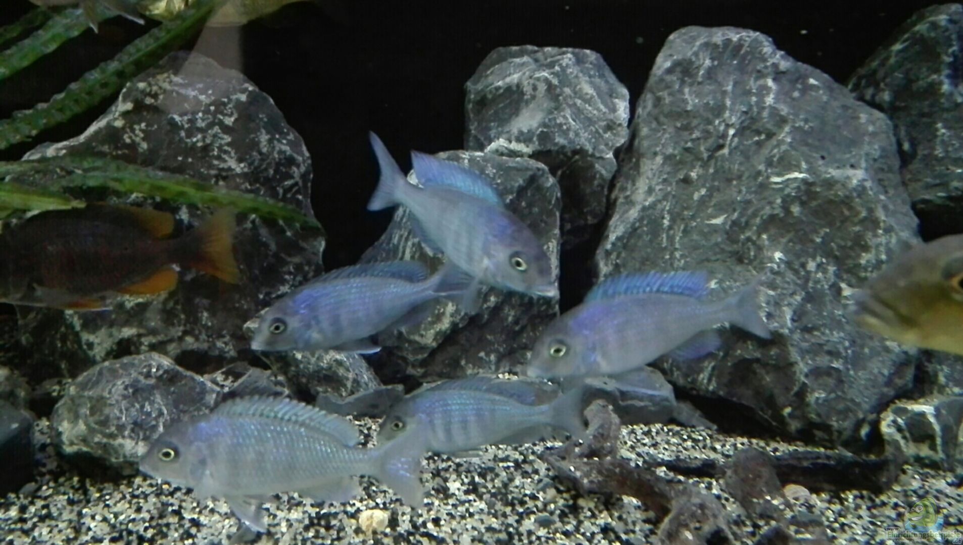 Protomelas similis 1/2 Sciaenochromis fryeri iceberg 1/2 Labidochromis Yellow 4 Protomelas dejunctus Jungtiere 1/2 Copadichromis borleyi red fin 1/3 Cyrtocara moorii 4 er Gruppe Jungtiere Auf dem Boden tummeln sich 10 Synodontis lucipinnis