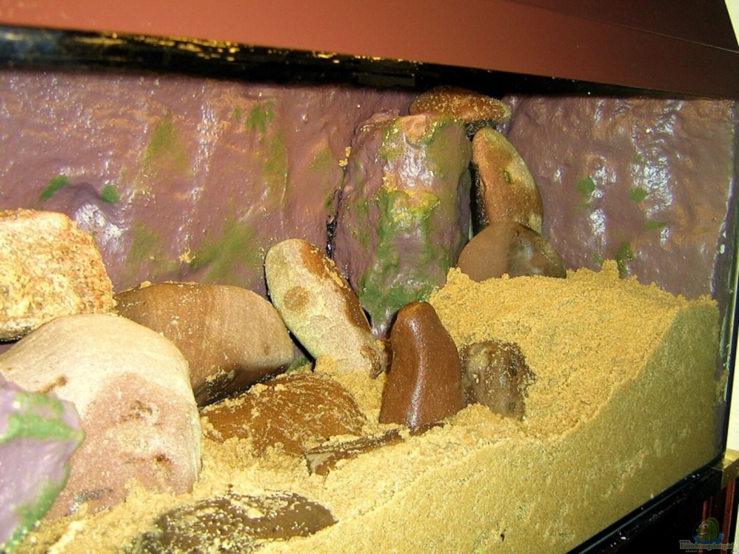 Meine neue Aq. Rückwand im Stein Optik. Viele höhlen und versteck Möglichkeiten. Gesamte Technik versteckt. Hinter dem Gro??en Sand Berg (Rechts) verbergen sich Gro??e höhlen auch unter dem Berg!. _____ Habe meine Juwel Aquarium Abdeckung in Brauner Farbe Lackiert. (Farbeffekt Hochglanz/ Porös)