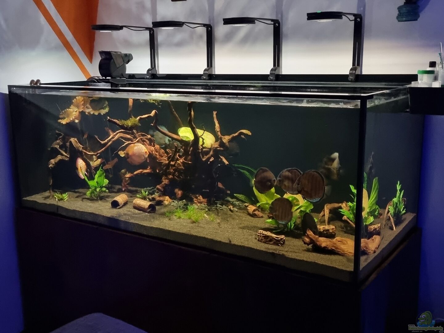 Maßgefertigtes Becken von Farao International s.r.o. - ich werde Bilder von der Produktion posten. Das Becken wurde hinten und links schwarz foliert, vorne und rechts ist es Weißglas. Die hintere Beckenwand ist 69, 5cm hoch damit die Lampen gut montiert werden können und nicht ins Wasser hängen. Unterbau aus Aluminium Stecksystem. Diskus Wildfänge, Green Tarzoo with Black Halo (Symphysodon tarzoo Pellegrin-Diskus) importiert von Amazon Exotic Import aus Manaus Rio Negro und Wildfänge [...]