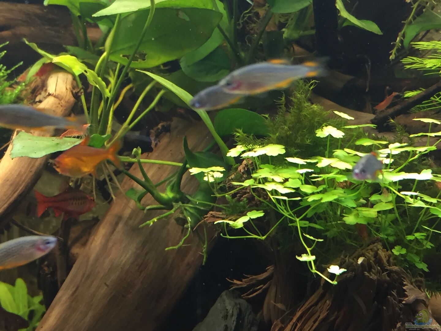 Bei dem Besatz herrscht noch ein bisschen Durcheinander, da ich aus meinen restlichen Aquarien Restbestände an Salmlern und Bärblinen eingesetzt habe. In Zukunft soll das Becken vorwiegend kleinbleibende Arten beherrbergen (fett gedruckt). 12x Otocinclus hoppei (Ohrgitterharnischwels): Absolut zu empfehlender und emsiger Wels, der in Gruppen gehalten werden sollte. 8x Hyphessobrycon pulchripinnis (Zitronensalmler): Aufgrund der neuen Beleuchtung und des dunklen Bodengrundes haben [...]