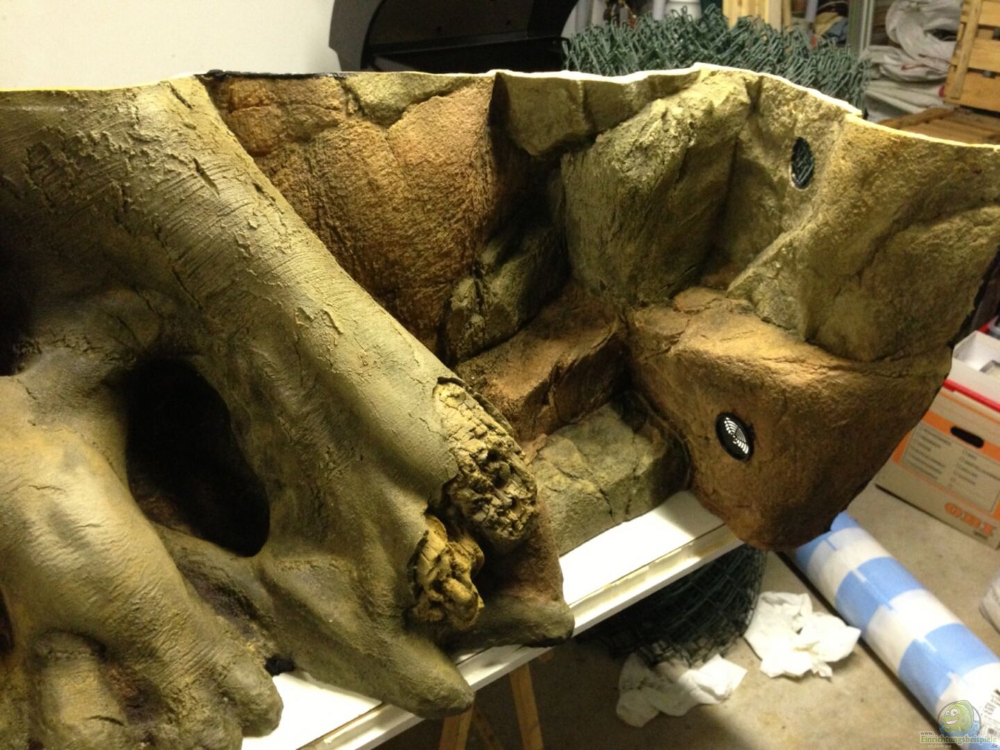 Das Becken ist nach unseren Ma??en gefertigt worden und hat einen eingebauten 4 Kammer Bio Filter. Es ist in die Wand eingelassen und steht im gleichen Raum wie die Heizungsanlage, womit wir problemlos das Becken (solargestützt) heizen können. Wasserablauf, Zulauf und Waschbecken sind direkt am Becken installiert. Als Unterbau habe ich die Wände mit Kalksandsteinen geklebt und mit einer dicken Betonplatte abgeschlossen. Der obere Teil des Aquariums ist mit drei Wie??lacktüren abgehangen. [...]