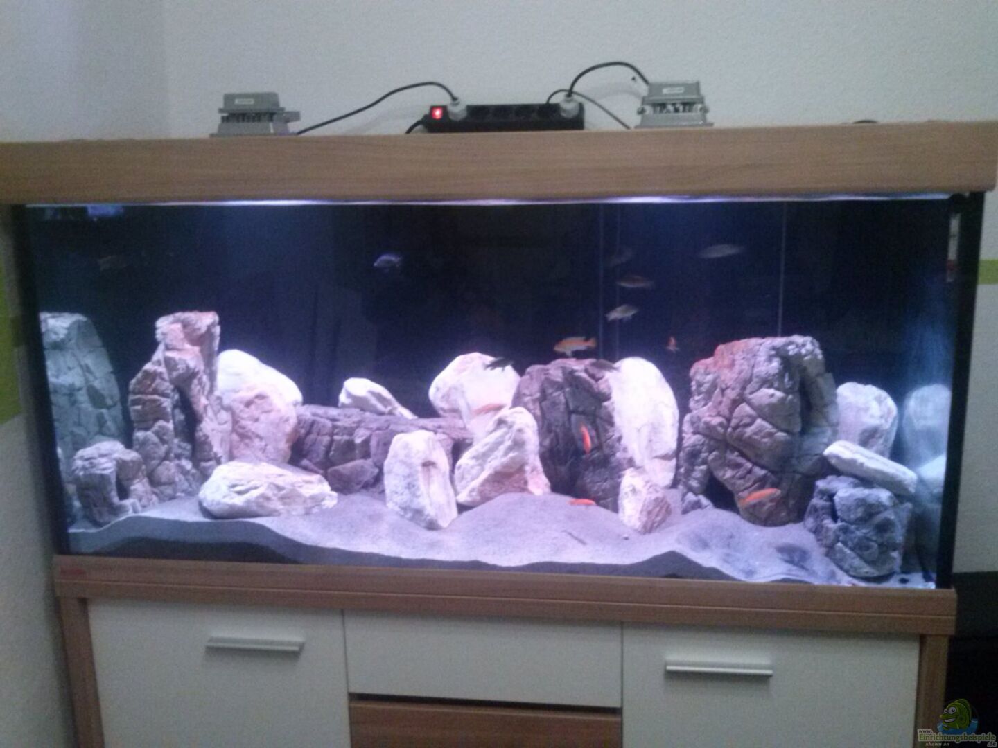 Eheim Scubaline 460 in Nussbaum/Weiss 10cm Breiter und 120cm langer Filterschacht über länge geklebt.