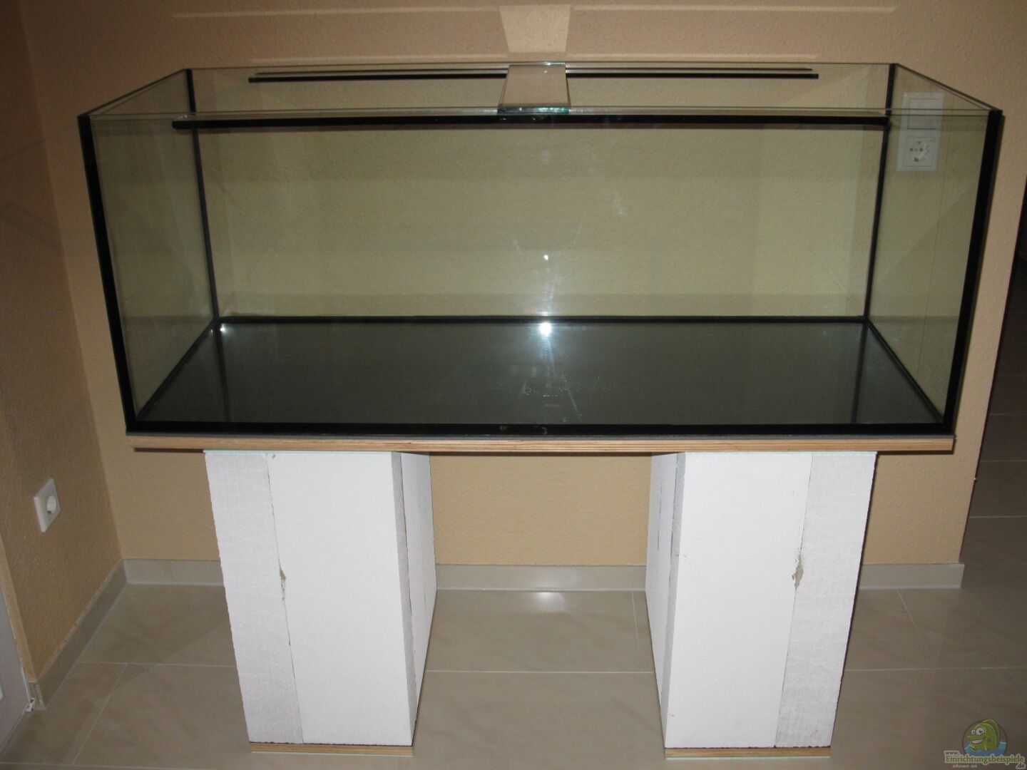 Aquarium: Zac: Aquarium 130x50x50cm, 325l, 10mm. Die Kanten sind diamantgeschliffen und sicherheitsverklebt. Zwischen dem Aquarium und der Siebdruckplatte ist eine 5mm dicke Aquariumunterlage. Unterbau: Selbstgebauter Unterbau aus Y-Tong Steinen und zwei 21mm dicken Siebdruckplatten. Zum Ausgleichen von Unebenheiten sind zwischen den Y-Tong Steinen, Siebdruckplatten und dem Fu??boden 5mm starke Selitac Laminatunterlagen. Die Y-Tong Steine wurden hochkant mit Fliesenkleber verklebt. Damit [...]
