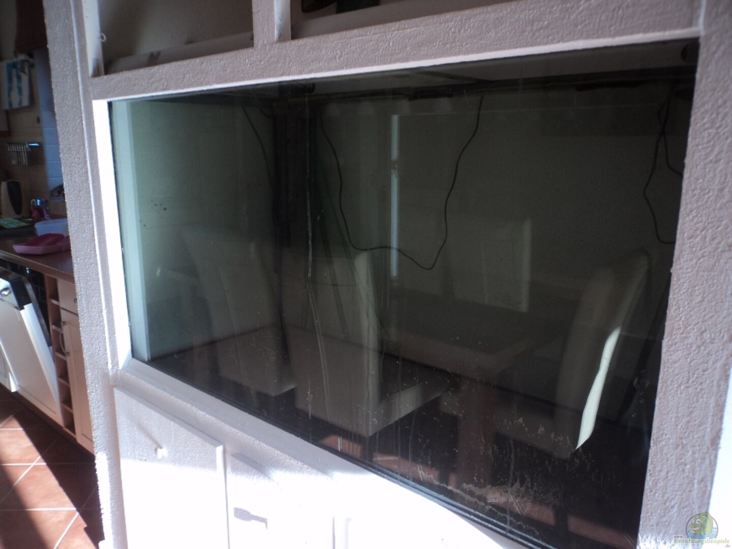 Das Becken ist aus 17 mm Floatglas gefertigt und ist sto?? Verklebt. Die Abeckdung ist ein Aluminiumabdeckeung mit zwei T5 Leichten und zwei Futterklappen. Das Becken ist eine Sonderanfertigung , um möglichst viel Wasservolumen zu bekommen habe ich die Höhe von 90 cm gewählt . Eine andere Grö??e wäre nicht gegangen weil es sonst nicht genau in die Ecke gepasst hätte. Den Unterschrank habe ihn komplett selber gebaut. Der Unterschrank steht auf altem Gewebeteppich um die Unebenheiten [...]