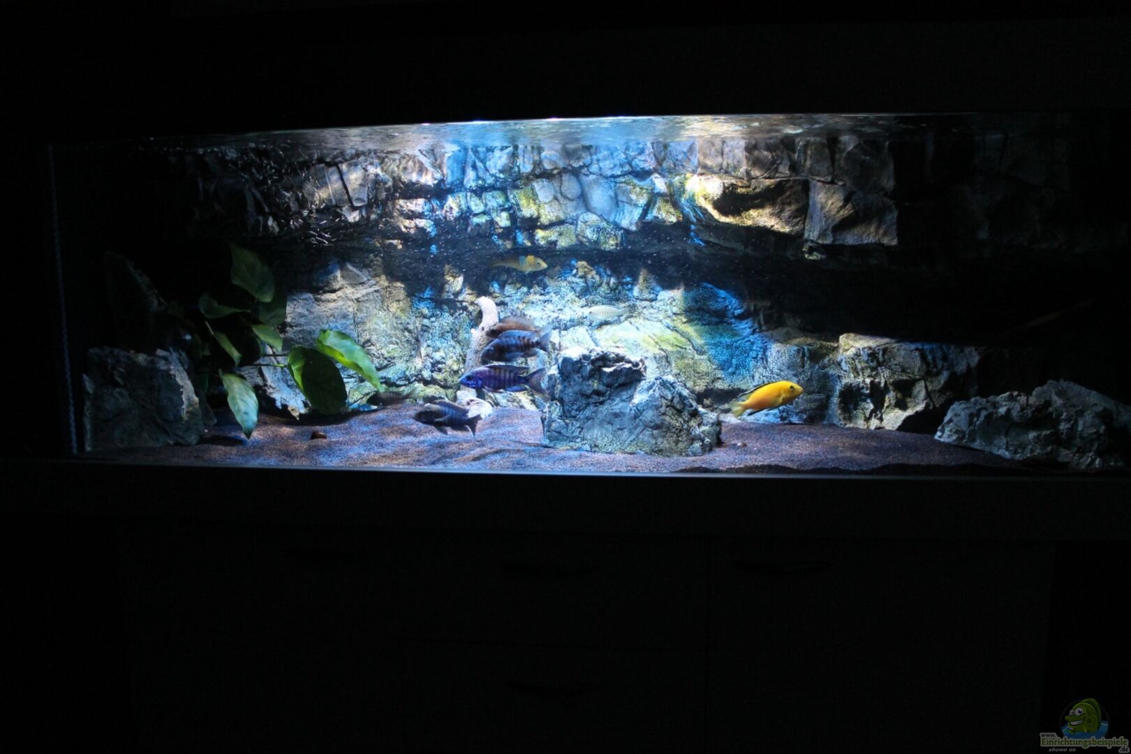 Hier findest Du traumhaft schöne Aquarien, die mit Buntbarschen der Art Nimbochromis polystigma (Vielfleckmaulbrüter) aus dem Malawisee besetzt sind.