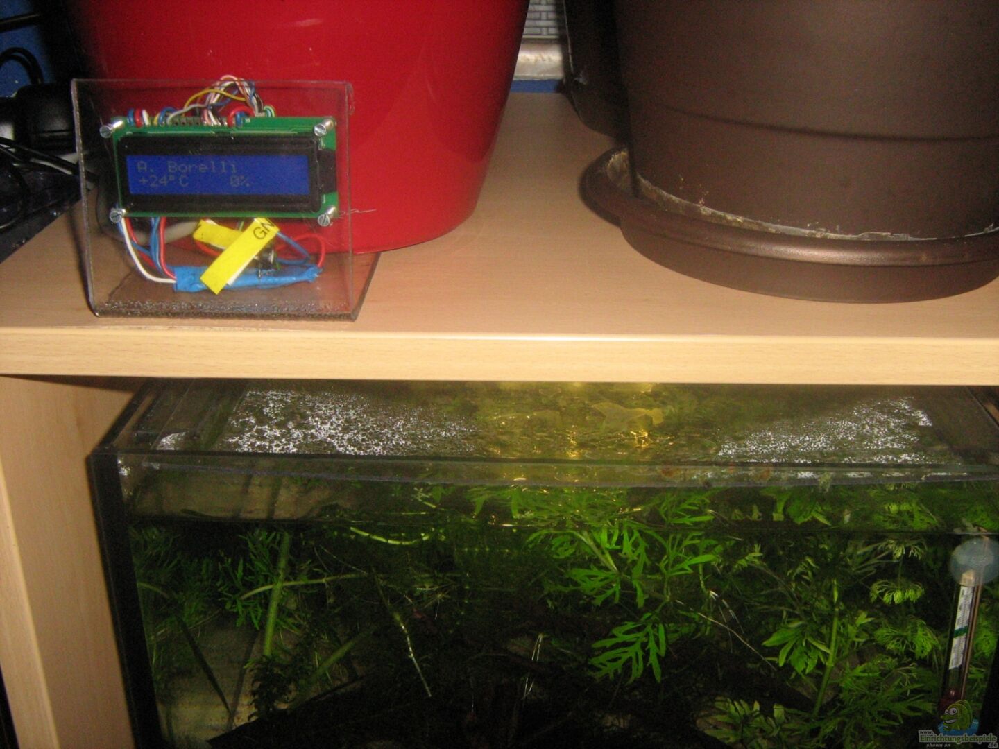 Heizstab 50W von Ebay vermutlich aus China aber er tut seinen Dienst. Ich habe zwar probiert ohne den Heizstab zu fahren aber die Temperatur ist mir dabei schon mehrfach deutlich unter 22°C abgerutscht so das der Heizstab zwingend im Aquarium bleiben muss. Aquariumcompuer für den kompletten Schrank. Das ganze System ist eher Marke Eigenbau. Es wird als fertiges Mikrocontrollerboard ein Arduino Uno verwendet. Daran hängt ein blaues HD44780 kompatibles 16x2 Zeichen Display. Als Temperatursensoren [...]