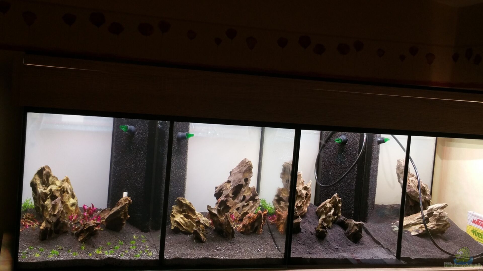 Hallo, Ich habe hir zwei 60x30x35 Aquarien zusammen gestellt in beiden habe ich eine trennscheibe in die mitte eingesetzt die aber nur 23cm lang ist und so mit micht ganz das Becken trennt. Habe dann an der Rückwand und der Mittelscheibe 2cm Plastikwinkel befestigt 4cm Schwarze Filtermatte in Form gebracht im unteren teit geteilt damit wenn ich sie mal auswaschen muss der Bodengrund nicht weg rutscht. Auserdem muste ich die Glasstreifen für die abdekung da wo der Filter ist heraustrenn um [...]