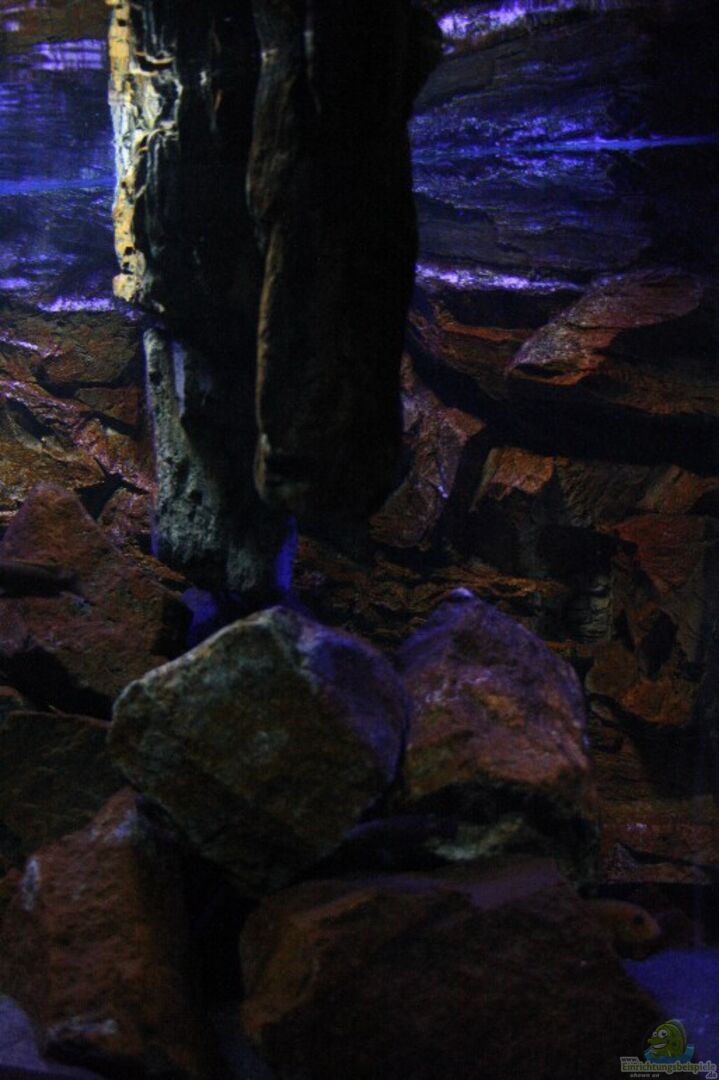 Das Becken ist eine Anfertigung von Tromsa-Aquarien , direkt vom Hesteller. 10mm Glasstärke ( Weissglas) Wulst und Stossverklebt Plexiglas Scheiben ca. 6 mm stärke liegen auf der Bodenscheibe, damit das Gewicht der Steine besser abgefedert wird, und falls mal einer umstürzt kein Glasbruch entsteht. Zwischen Unterschrank und Becken liegt eine Schaumgummimatte zum ausgleichen von Unebenheiten.