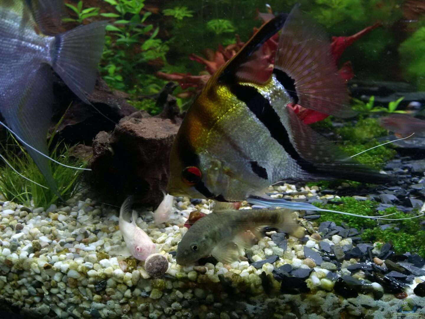 1 Ancistrus 2 Skalare 2 Garra rufa 4 Albino Corydoras 6 gefleckte Dornaugen 10 Schmucksalmler "White Fin" 15 Tetras verschiedener Farben (Diamant, rot, Feuer, blau, schwarz, Gold)
