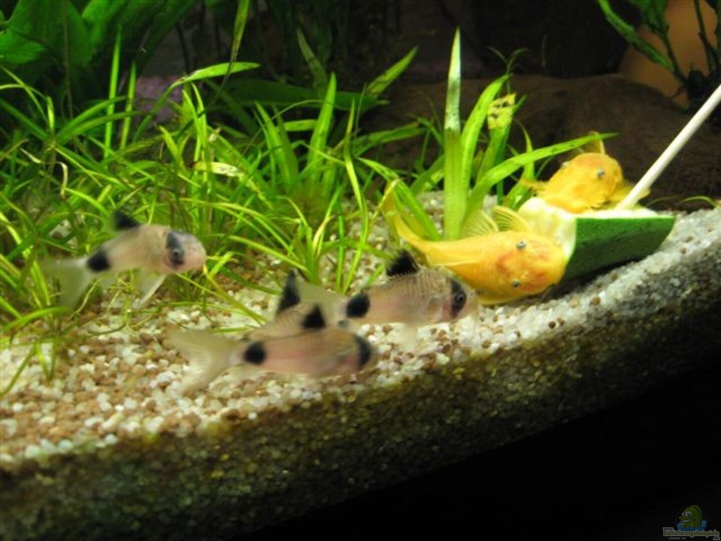 L 144, goldener Antennenwels (1, 1) 11 Rote Neon (?, ?) 9 Pandapanzerwelse (5, 4) ca. 15 kleine Guppies 2 Apistogramma spec. "Vielfleck" (1, 1)