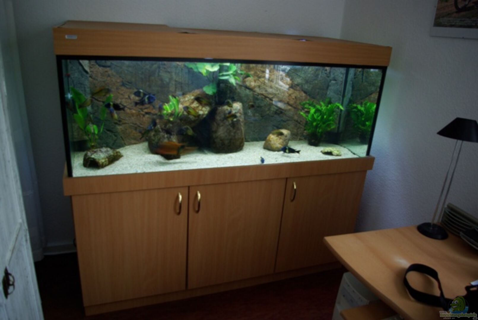 -Aquarium von Rutschkeaquaristik (Berlin Neukölln) mit Kunststoffabdeckung in Buche -Standardbecken aus 12mm Floatglas -Rückwand von ´Back to Nature´ (Slimline) 2farbig (grau und rötlich, gibt es offiziell noch nicht:-))) gekauft bei Isabi (Falkensee)