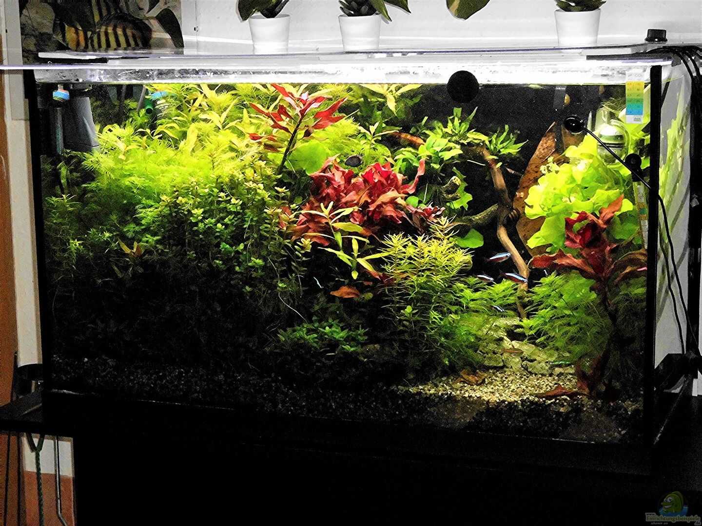 Eheim Komplettset ( Abdeckung mit T-8 Röhren wurde durch LED Beleuchtung ersetzt.) Das Becken wurde komplett neu Eingerichtet.