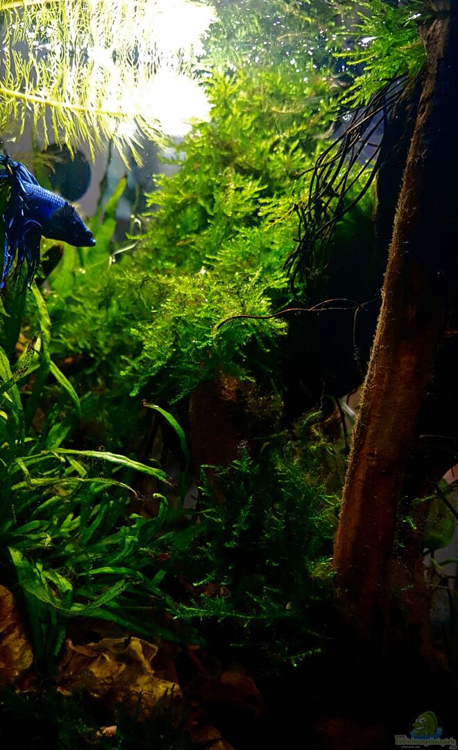 Vesicularia ferriei 'Weeping' Microsorum pteropus Trident Microsorum mini 2x Anubias barteri var. nana mini Plus temporär ein Büschel Hornkraut um die überschüssigen Nährstoffe aus dem Wasser zu ziehen