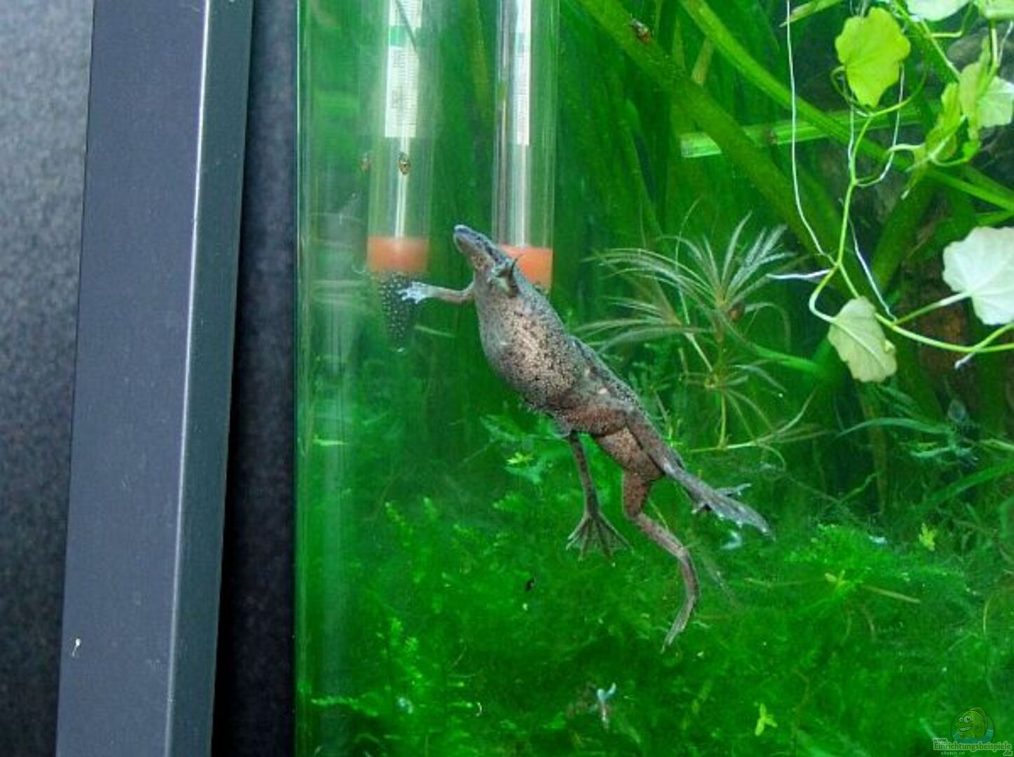 Aktueller Besatz: 3 Hymenochirus boettgeri, Zwergkrallenfrösche: 1 Weibchen, zwei Männchen. Das Becken ist auf Dauer zu klein für das Trio, aber als Hochzeitsbecken taugt es prima. Die Tiere finden genügend verstecke und werden reichlich mit Lebendfutter versorgt. Jeden Abend ab etwa Dämmerung rufen die Männchen nach dem ihrer Hoffnung nach paarungsbereiten Weibchen :-) Das Rufen klingt wie eine Mischung aus Zirpen dem Geräusch, wenn irgend etwas durchschmort *g* Es ist gar nicht [...]