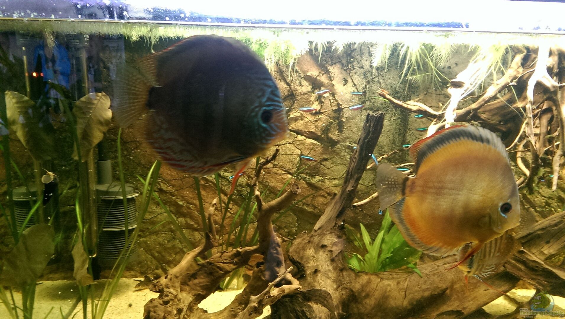 35 x roter Neon 16 x Orangenflossenpanzerwels RedFire Garnelen, keine Ahnung wie viele, schätze so um die 40. Die sind vor 14 Tagen aus einem anderen Becken ins grosse umgezogen. 6 x Diskus, 4 x rot-türkis und 2 x Alenquer 1 Paar Schmetterlingsbuntbarsche Die Anzahl der Garnelen hat sich deutlich erhöht.