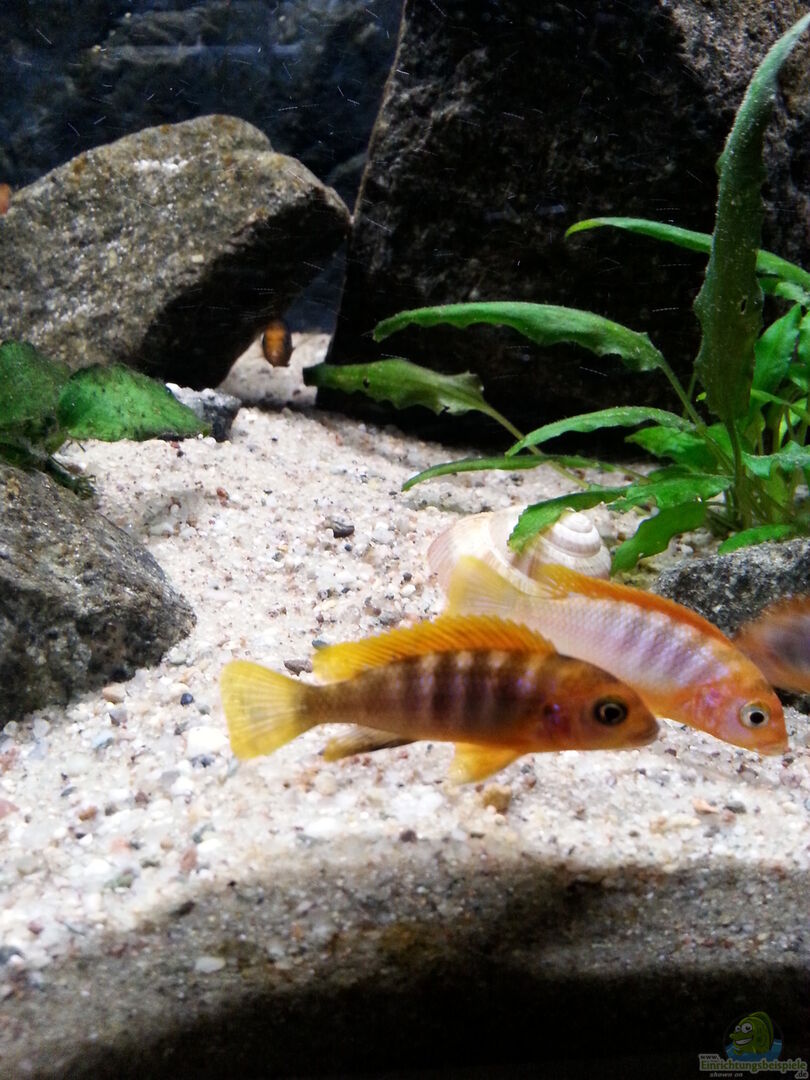 In meinem Becken haben 10 Labidochromis sp. "hongi" Red Top ein neues Zuhause gefunden. Sie werden nicht sehr gro??, die Männchen 10 cm und die Weibchen 8 cm. Sie sind jetzt seit 3 Wochen im Becken und leider noch etwas schüchtern. Auch beim Füttern kommen sie erst langsam heraus. Ich hoffe das legt sich in den nächsten Wochen. Das Geschlecht ist noch nicht bei allen bestimmbar, da die Männchen in der "Pubertät" ihre Streifen verlieren und sich erst dann abzeichnet [...]