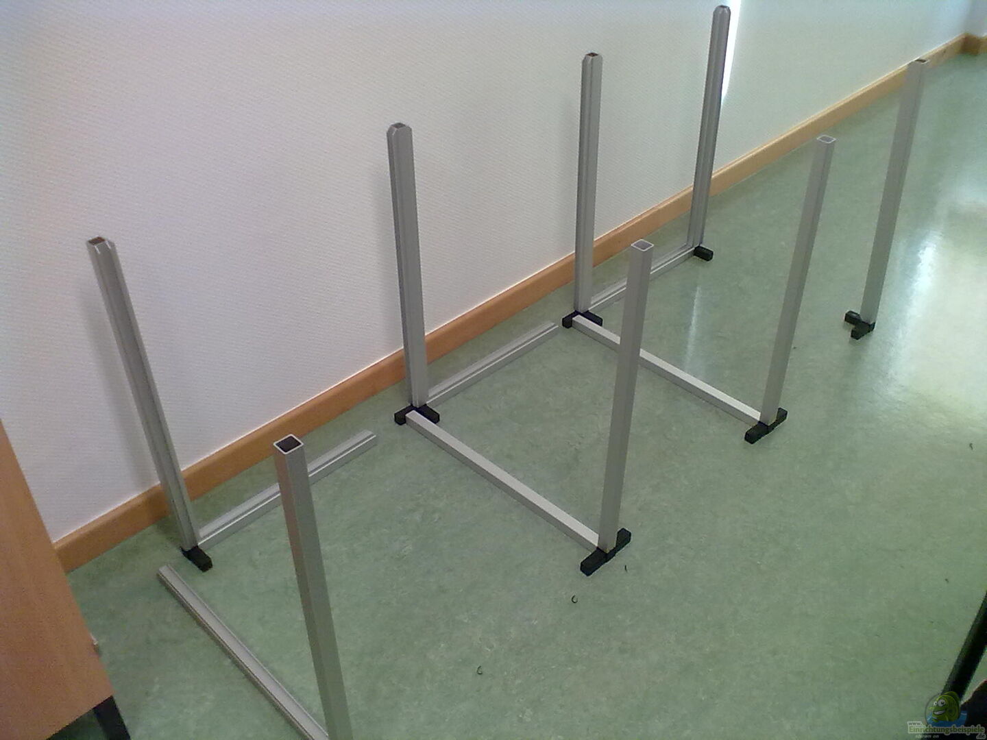 Das Becken mit den oben genannten Ma??en ist von Aquarienbau Voigt aus Werneuchen und wurde mit 12 mm Float-Glas angefertigt. Das Becken steht auf einem Alugestell von Marine Systems 140 cm x 60cm. Das Allugestell hat eine Höhe von 70 cm , darauf befindet sich noch eine Siebdruckplatte und eine 1 cm Styrodurplatte.