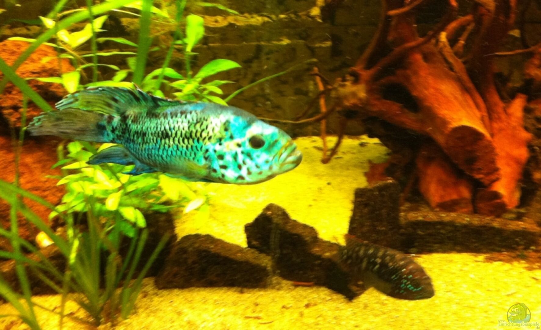 Paarbecken für Rocio otofascicata Synonyme Heros octofasciatus Cichlasoma octofasciatus Cichlasoma hedricki Cichlosoma biocellatum Dieser Fisch braucht für ein Wohlbefinden ein Becken mit sehr klarem Wasser und mittlerer Strömung. Der Grund sollte mich weichen Kies oder Sand ausgelegt sein, da der Fisch sehr gerne wühlt. Dieser Fisch ist sehr schwer zu Vergesellschaften da er sehr aggressiv sein kann, und kleinere Fische für ihn Futter sind. Das Weibchen ist eine [...]