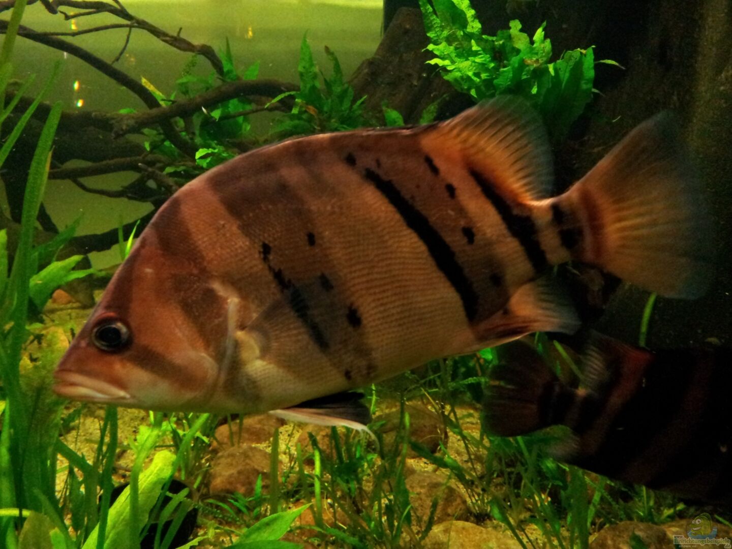 Hier findest du alle wichtigen Infos zur Haltung und Beispiele für die Einrichtung deines Aquariums für Datnioides campbelli (Neuguinea-Tigerbarsch).