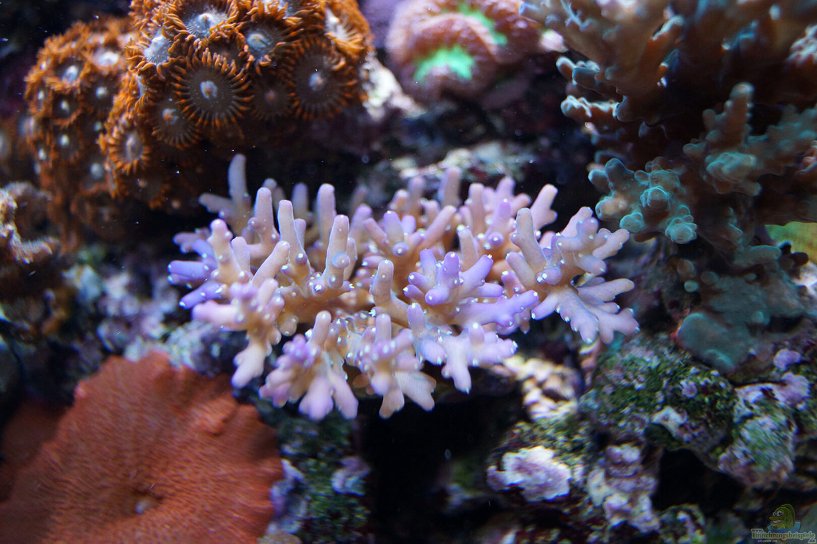 Fische: - 3 x Chromis viridis - grünes Schwalbenschwänzchen - 6 x Pseudanthias squamipinnis - Juwelen Fahnenbarsch - 3 x Pterapogon kauderni - Kardinalbarsch (eigene Nachzucht) - 2 x Amphiprion ocellaris - Falscher Clown-Anemonenfisch - 2 x Chrysiptera hemicyanea - Arzur Riffbarsch - 1 x Acanthurus leucosternon - Pazifik Wei??kehldoktor - 1 x Paracanthurus hepatus - Paletten Doktorfisch - 1 x Zebrasoma scopas - Brauner Segelflossen-Doktor - 1 x Labroides dimidiatus - Putzerlippfisch - [...]