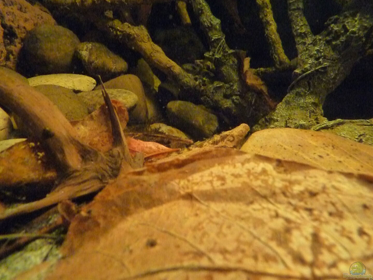 - Verschieden gro??e Moorkienwurzeln - Hobby Mangrovenwurzel 1, 2 und 3 - verschieden gro??e Steine (Rheinkiesel 50-150mm) aus dem Baumarkt - Rückwand Root & Rock (noch vom alten Layout mit drin, zu aufwendig diese zu entfernen, also bleiben sie) - viele gro??e und kleine Seemandelbaumblätter - gro??e und kleine Erlenzapfen - Herbstlaub