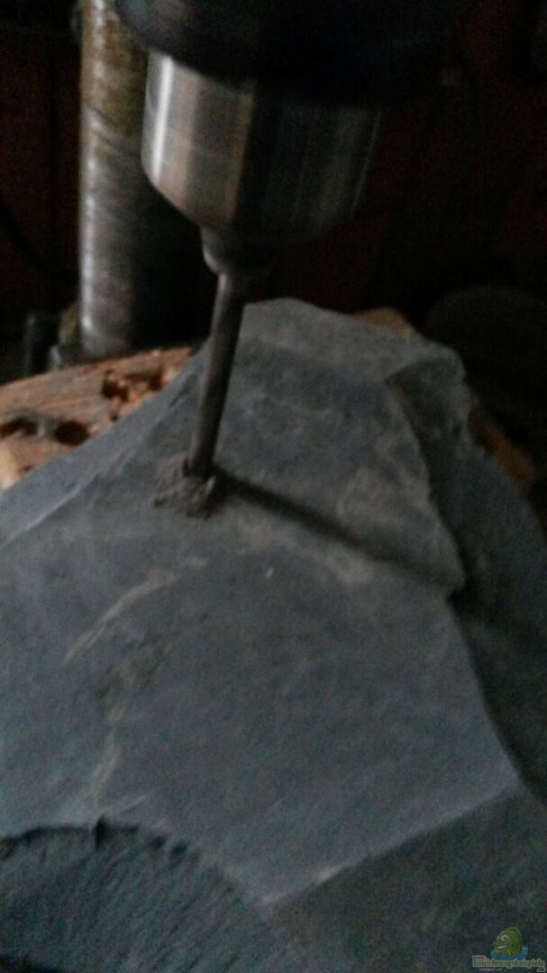 Moorkienwurzeln. Schiefer schwarz, kombiniert mit den Wurzelästen. Kiesel in verschiedenen Grö??en und Farben. Laub (Buche und Eiche), das Laub überbrühe ich vor Einbringen ins Becken mit hei??em Wasser. Buchenäste (trockene ??ste, gesammelt in der Natur), ebenfalls überbrüht und vorgereinigt. Gestein (Name mir nicht bekannt). Erlenzapfen (gesammelt in der Natur), sie sollen in Kombi mit dem Moorkienholz für eine braunfärbung des Aquarienwassers sorgen. Rückwand: Hinter [...]