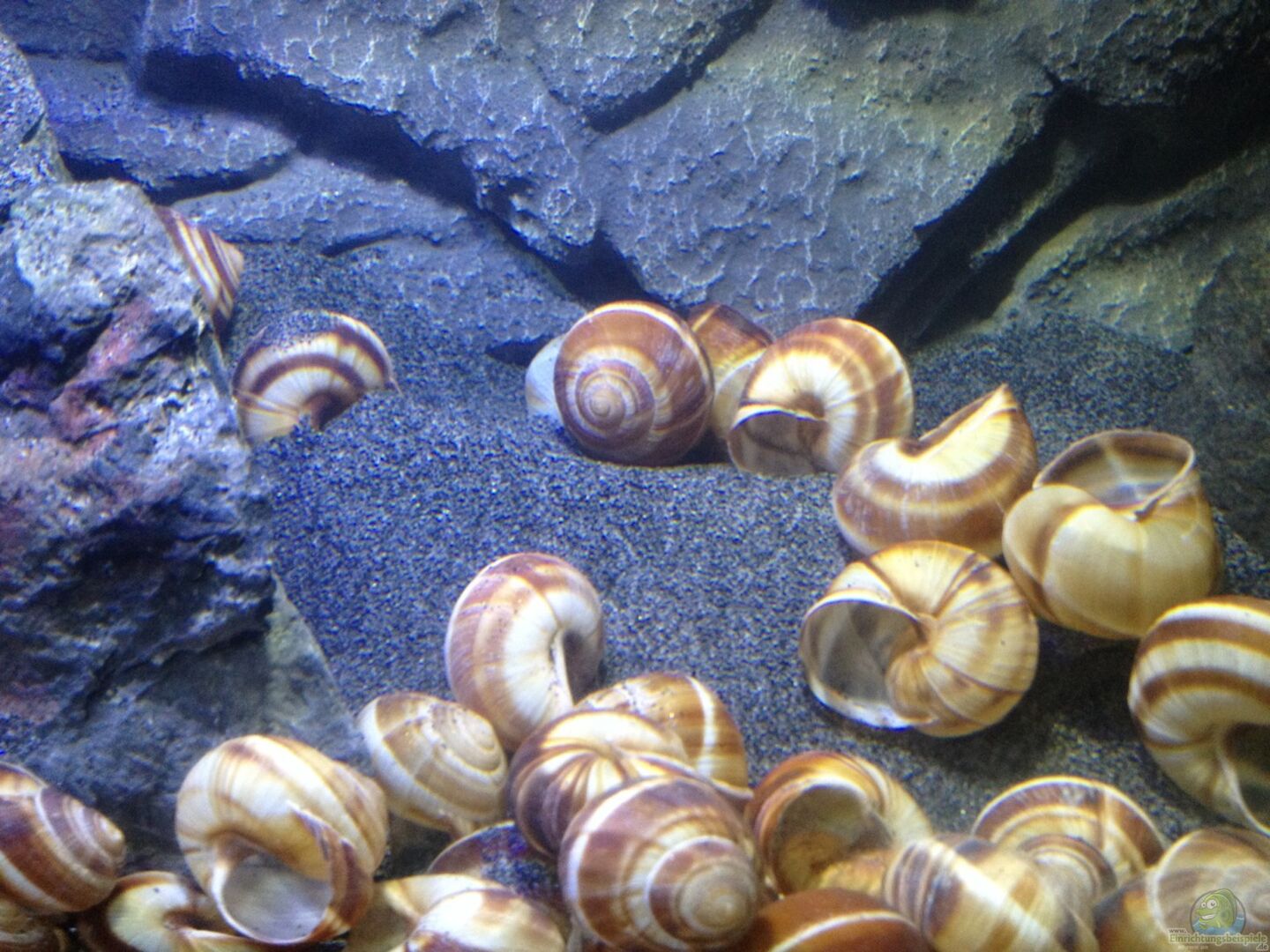 Eine alte Rückwand Stone Granite. Diese wurde zugeschnitten und als Rückwand eingesetzt. ca. 10 kg Basaltgestein xx Schneckenhäuser Ursprünglich wollte ich nicht so viele Schneckenhäuser drinnen haben, aber mein Sohn hatte einen ungeheuren Spa??, die Häuser ins Becken zu werfen, also was solls? Er hatte Spa?? an der Sache und das Interesse für sein Aquarium war auch da. Was gibt's besseres??