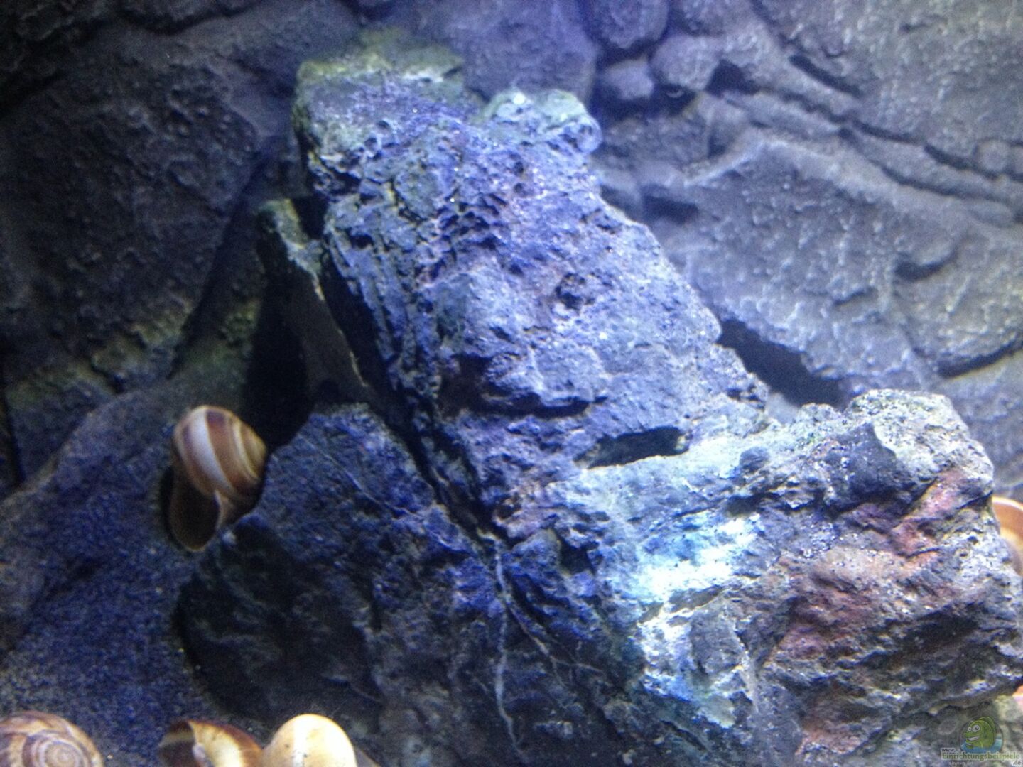 Eine alte Rückwand Stone Granite. Diese wurde zugeschnitten und als Rückwand eingesetzt. ca. 10 kg Basaltgestein xx Schneckenhäuser Ursprünglich wollte ich nicht so viele Schneckenhäuser drinnen haben, aber mein Sohn hatte einen ungeheuren Spa??, die Häuser ins Becken zu werfen, also was solls? Er hatte Spa?? an der Sache und das Interesse für sein Aquarium war auch da. Was gibt's besseres??