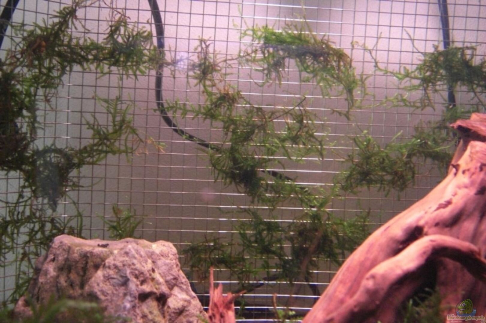 Moosrückwand/ naja soll es mal werden :-) wei??e Kieselsteine Derkorsteine Moorkienwurzel 3er Keramik-Röhren als Verstecke