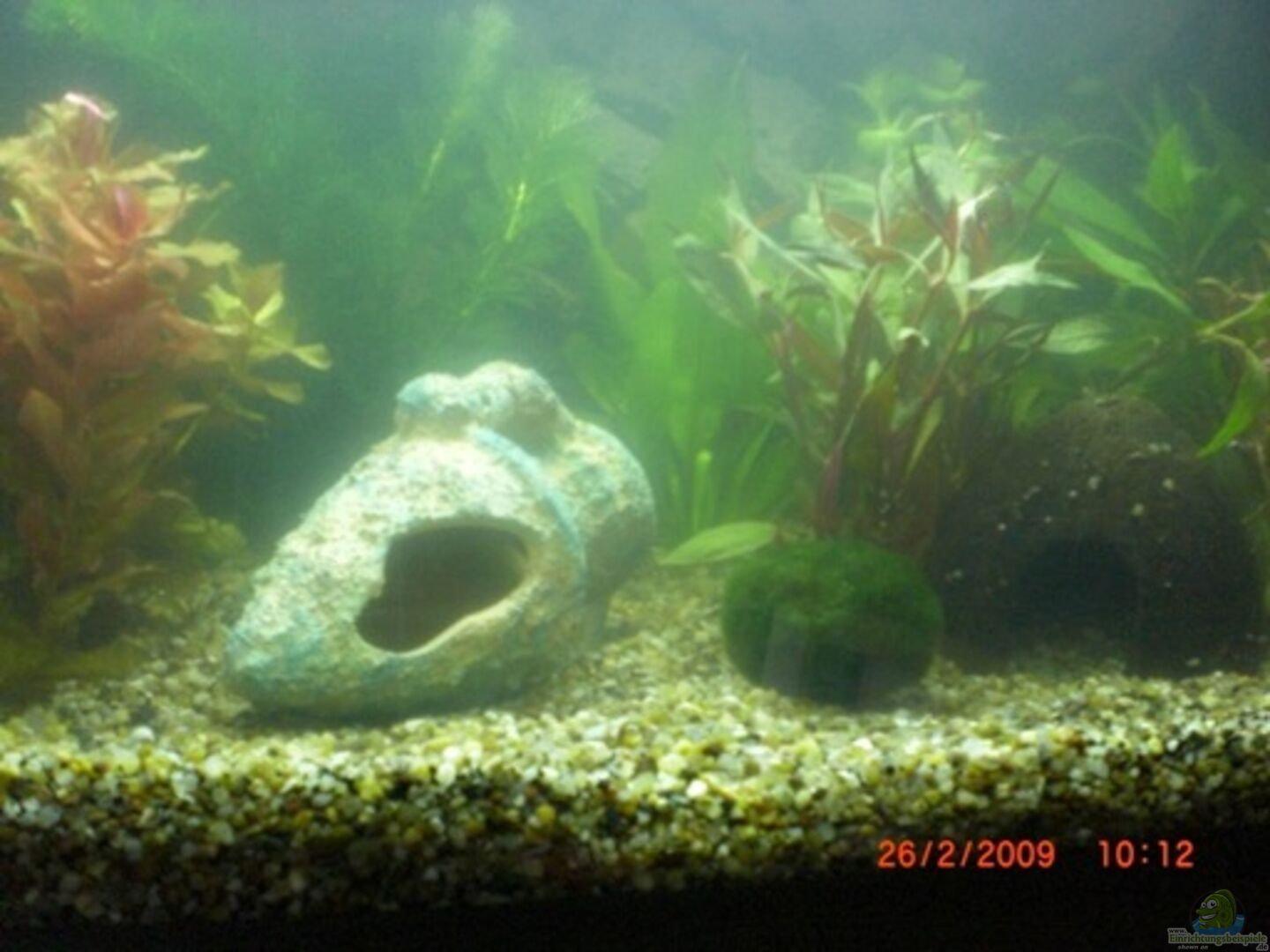 1 JBL - Cocos cava 1 kleine Keramikampore ( 12.03.09 entfernt ) 1 Felsplateau 06.03.2009: 1 kleines Felsplateau eingesetzt 06.03.2009: Ampore hinter Pflanzen versteckt