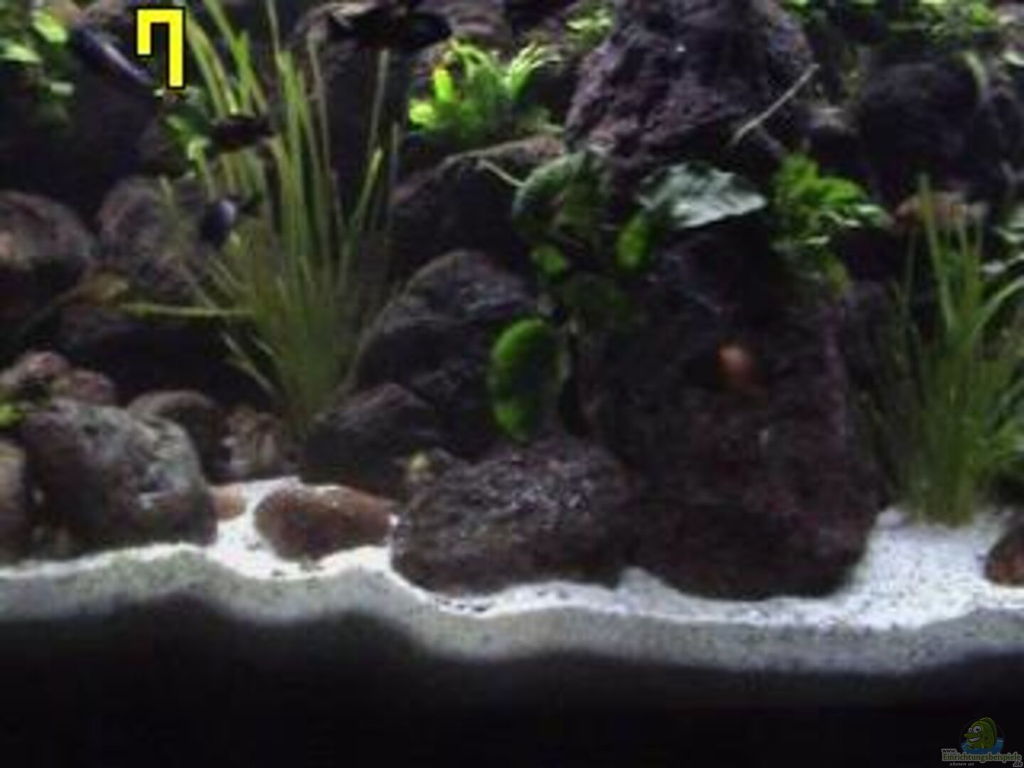 ca 30 gro??e Vulkansteine die eine Rückwand bilden (hatte wegen der scharfen Kanten des Gesteins noch nie Probleme) Ein gro??er Seinaufbau in der Mitte zur Revietrennung 6 gro??e runde Fiendlinge zum Algenabweiden 1 Schieferplatt zum Ablegen 2 Riesenmeerespocken (gutes Versteck fur die Multifasciatus) etliche Weinbergschneckenhäuser