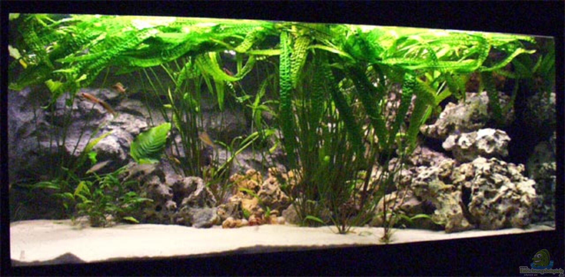Als Hauptdekorationsmittel habe ich das Lochgestein aus meinem ehemaligen Malawibecken übernommen. Da ich auch viel Sandfläche und freien Schwimmraum schaffen wollte, reichte das Gestein auch für dieses größere Aquarium. Eine große Gruppe von Steinen wurde in der rechten Ecke aufgebaut und reicht bis an die Wasseroberfläche. Zwei größere Steine wurden in die linke Beckenhälfte so gesetzt, dass Sichtbarrieren entstehen. Im linken Vorderbereich wurde eine freie Sandfläche [...]