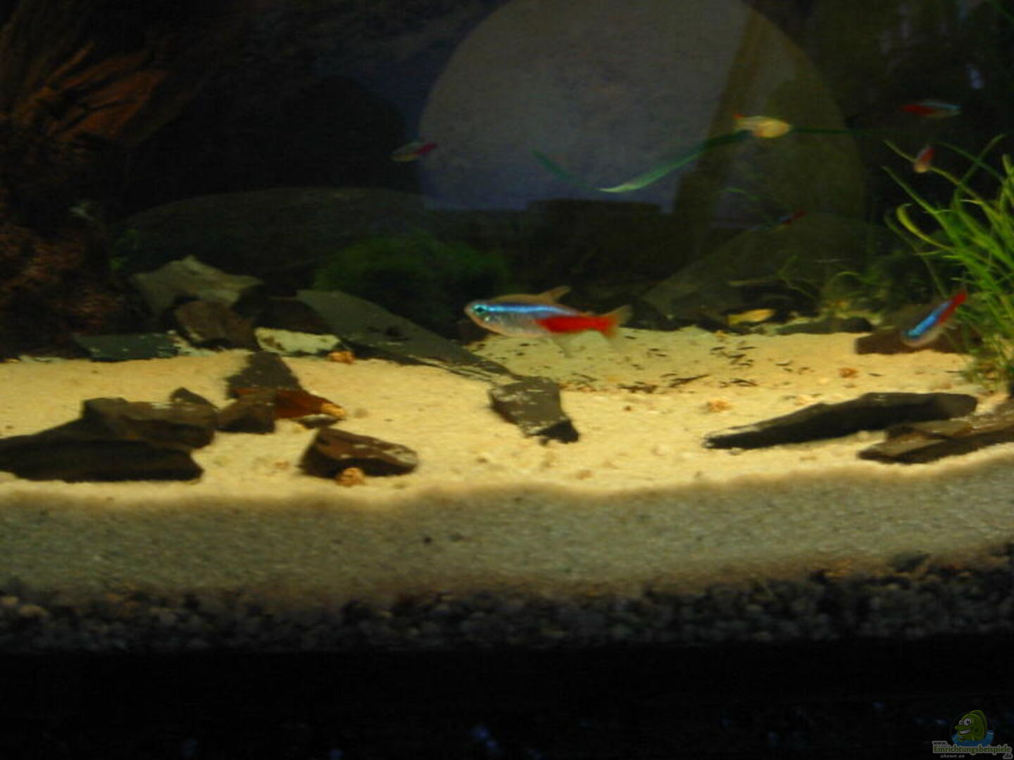 2 Skalare ( Geschlecht noch nicht erkennbar ) 12 Neonsalmler 2 Simpson- Tuxedo- Platys ( 1m + 3w ) 2 Ancistrus dolichopterus 1 Messerfisch