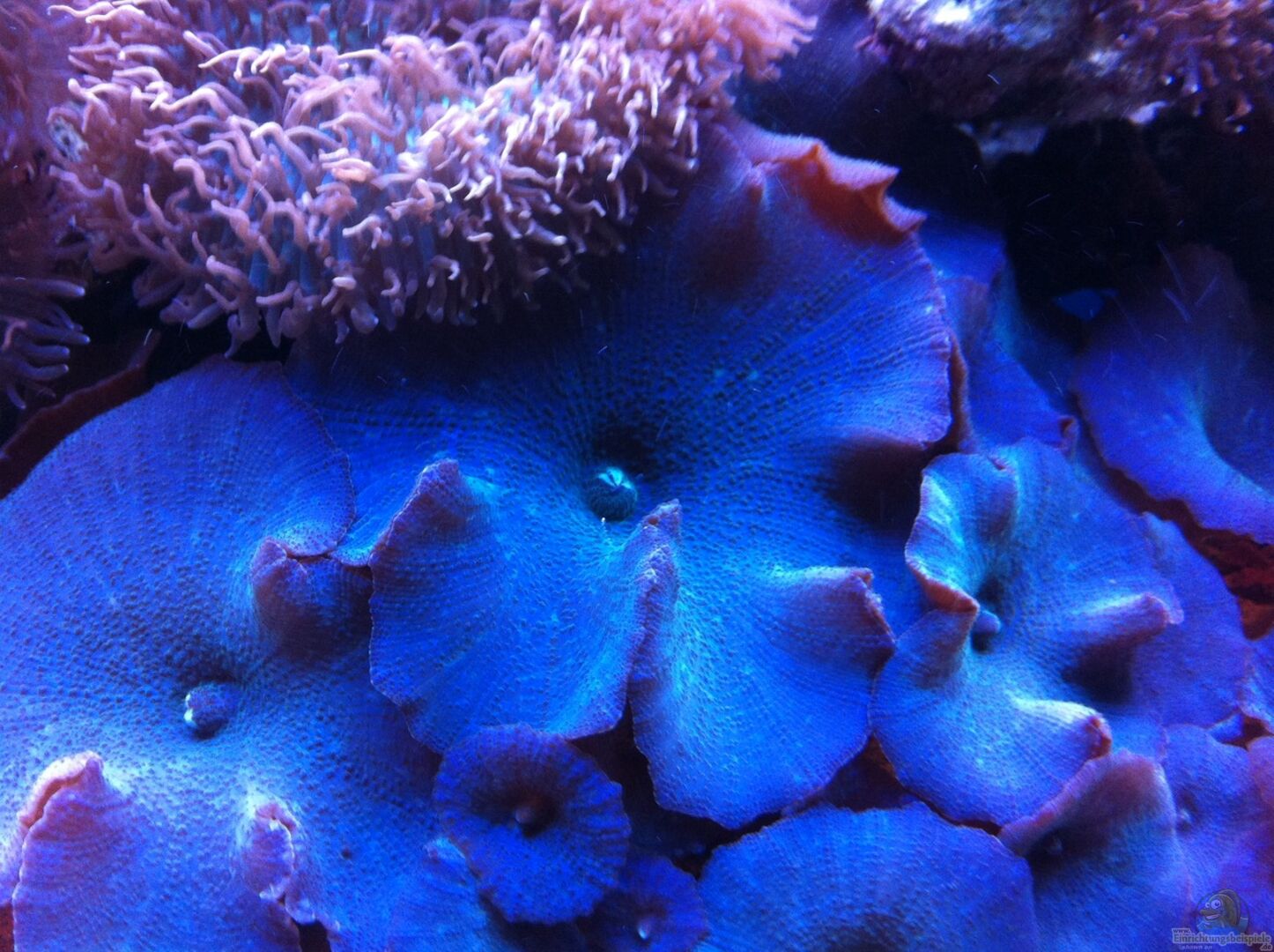 lebend Gestein ca 40Kg ein paar kleinere Brocken Tot Gestein der Aufbau ist so errichtet, das genügend Durchgänge, Höhlen und Spalten entstanden sind. Am Boden selbst sind die Durchgänge auch grö??zügiger gestaltet worden, um eine möglichst gute Durchströmung im ganzen Riffbereich zu bekommen (auch nach hinten).