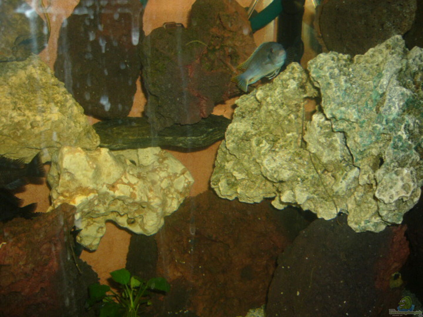 Statt einer rück-und seitenwand habe ich die wände miit gestein verkleidet , Diese habe ich im Becken so angeordnetdas sich viele Spalten und gro??e/kleine Höhlen ergeben .So können die Barsche Reviere abstecken und sich auch mal `aus dem Weg gehen.Auch der direkte Blickkontakt kann so vermieden werden. Da die Steine gleichzeitig aufgebaut sind, können sie schön durchschwommen werden.da das Gestein an der Rück , Seitenwände bis zur abgeckung gestapelt ist, Sieht man natürlich den Heizstab [...]